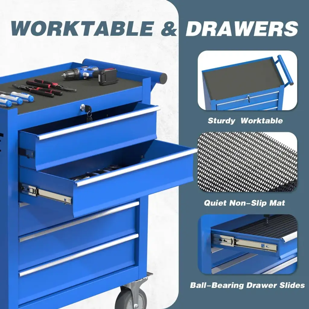 5-Drawer Heavy Duty Rolling Tool Chest Tool Storage Box - N/a - Blue