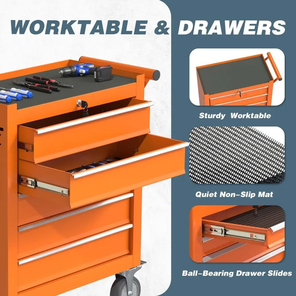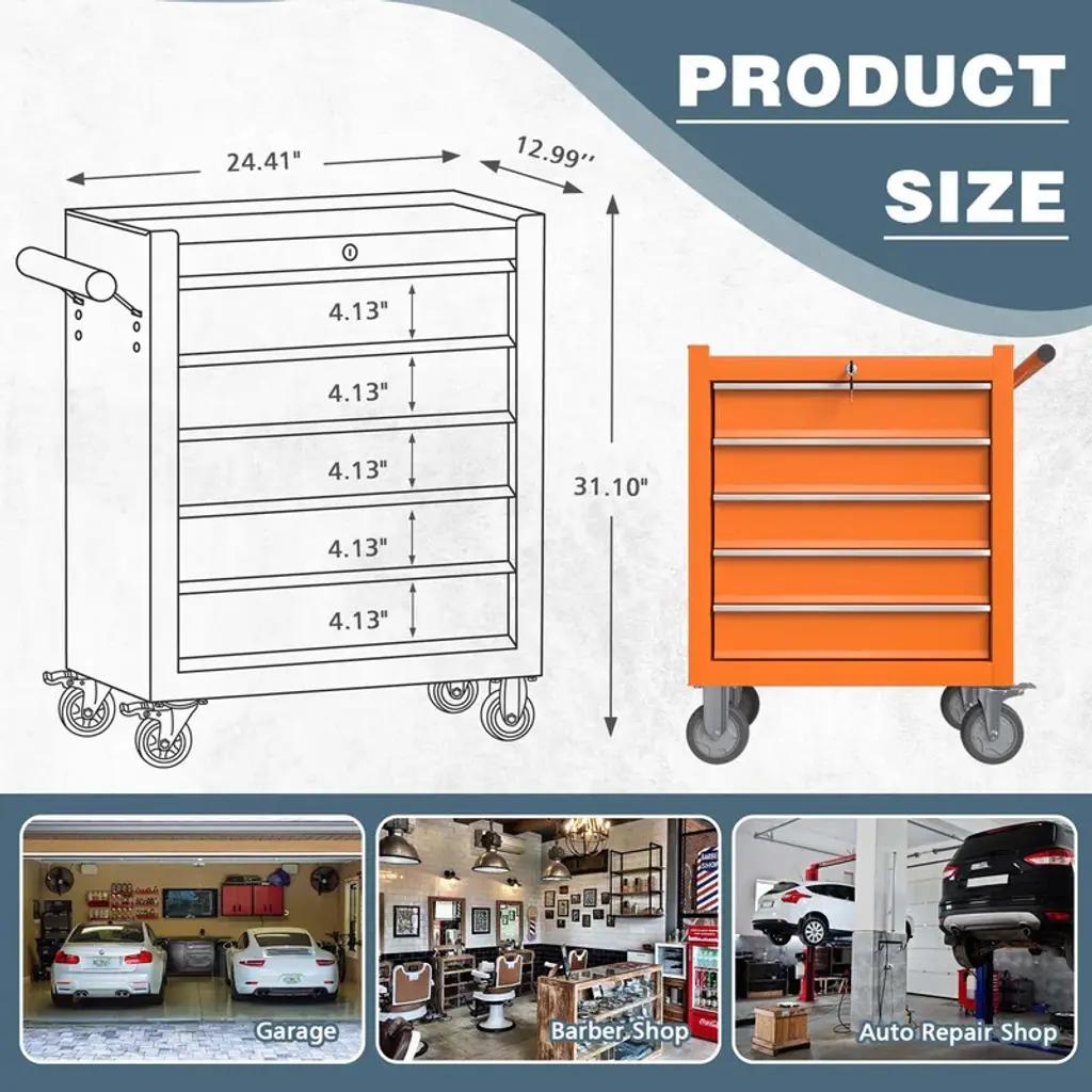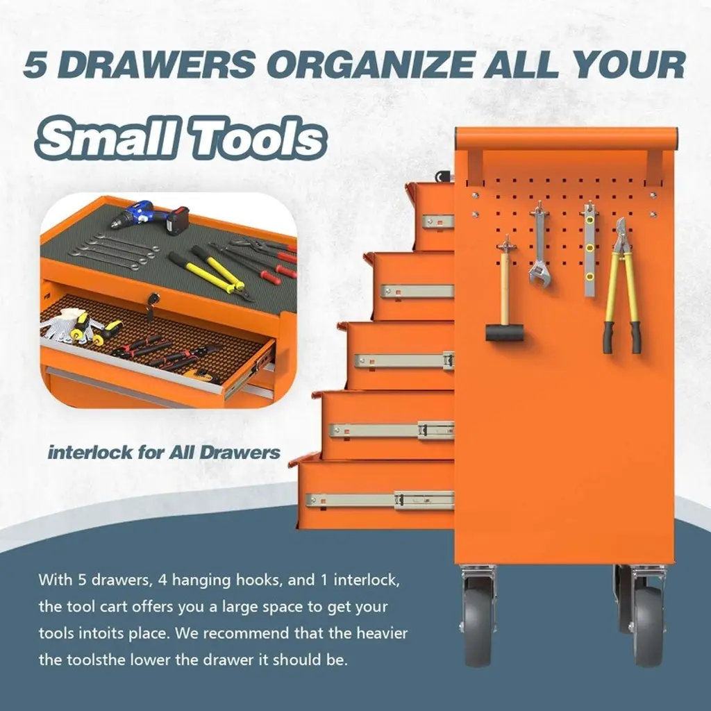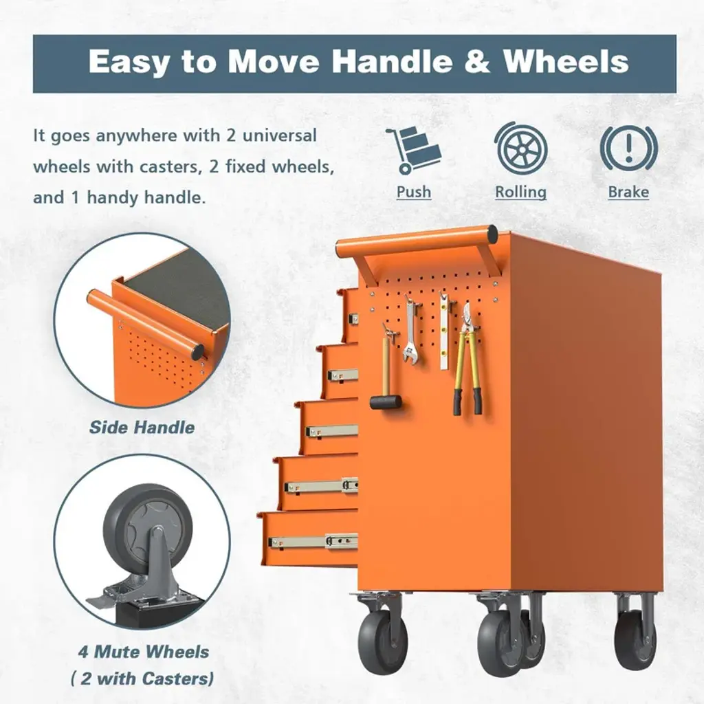 5-Drawer Heavy Duty Rolling Tool Chest Tool Storage Box - N/a - Orange