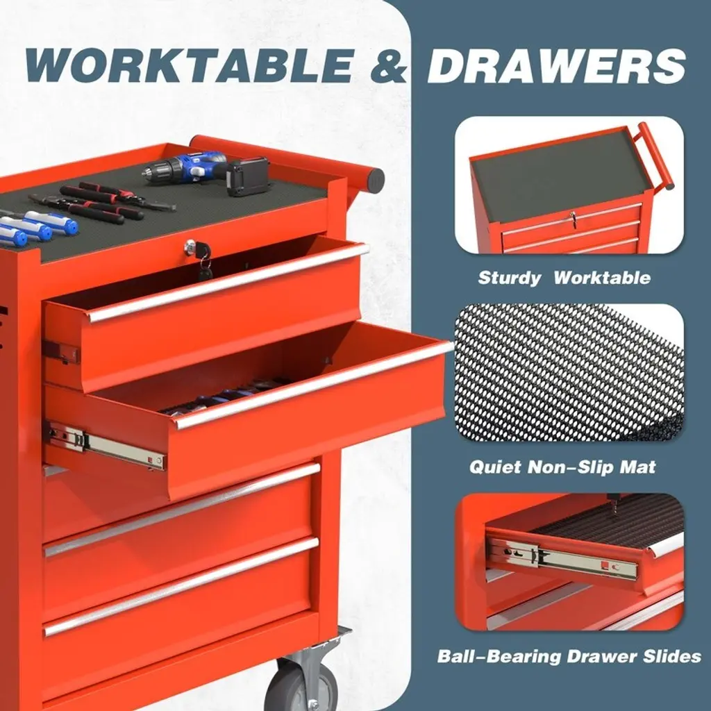 5-Drawer Heavy Duty Rolling Tool Chest Tool Storage Box - N/a - Red