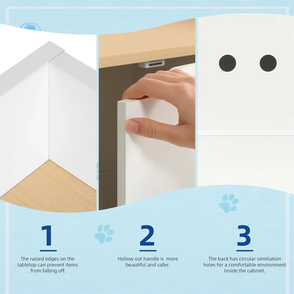 Discover the perfect harmony of style and utility with the Veritable Hidden Litter Box Furniture. This innovative piece of furniture elegantly disguises a cat litter box while offering a chic storage solution, all in a fashionable white-gold finish that effortlessly matches various home decors. Features: Product Information: Elevate your home's interior while catering to your cat's needs with the Veritable Hidden Litter Box Furniture, a testament to smart design and practical living.