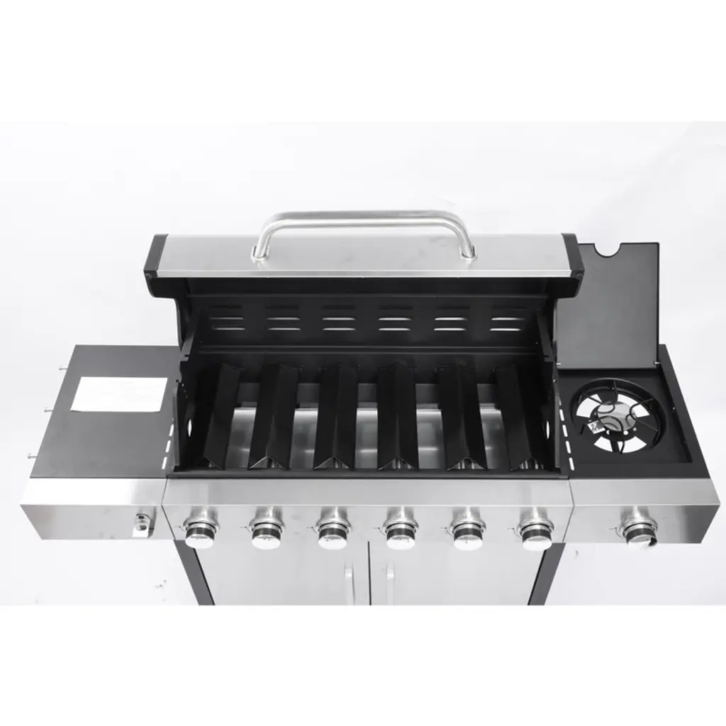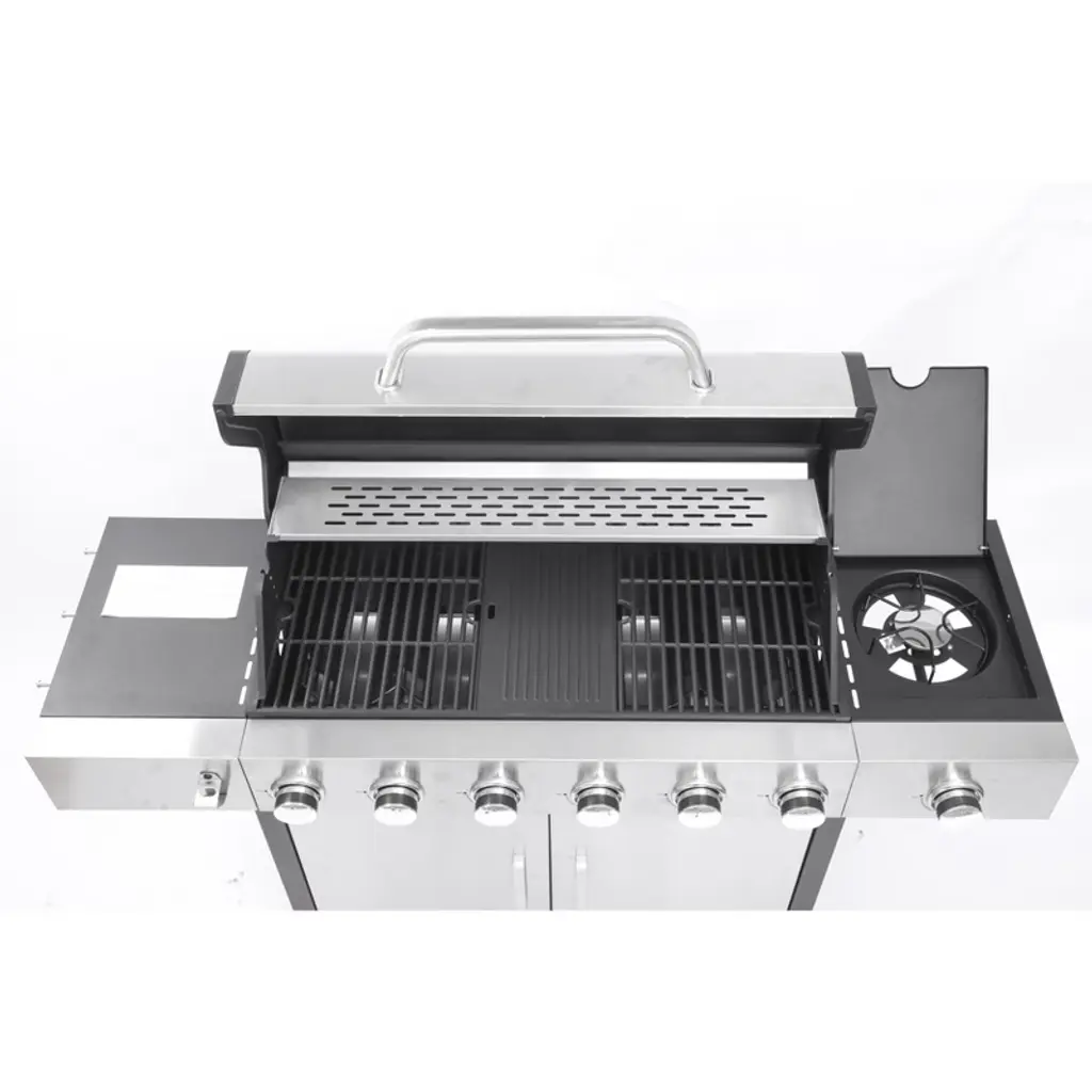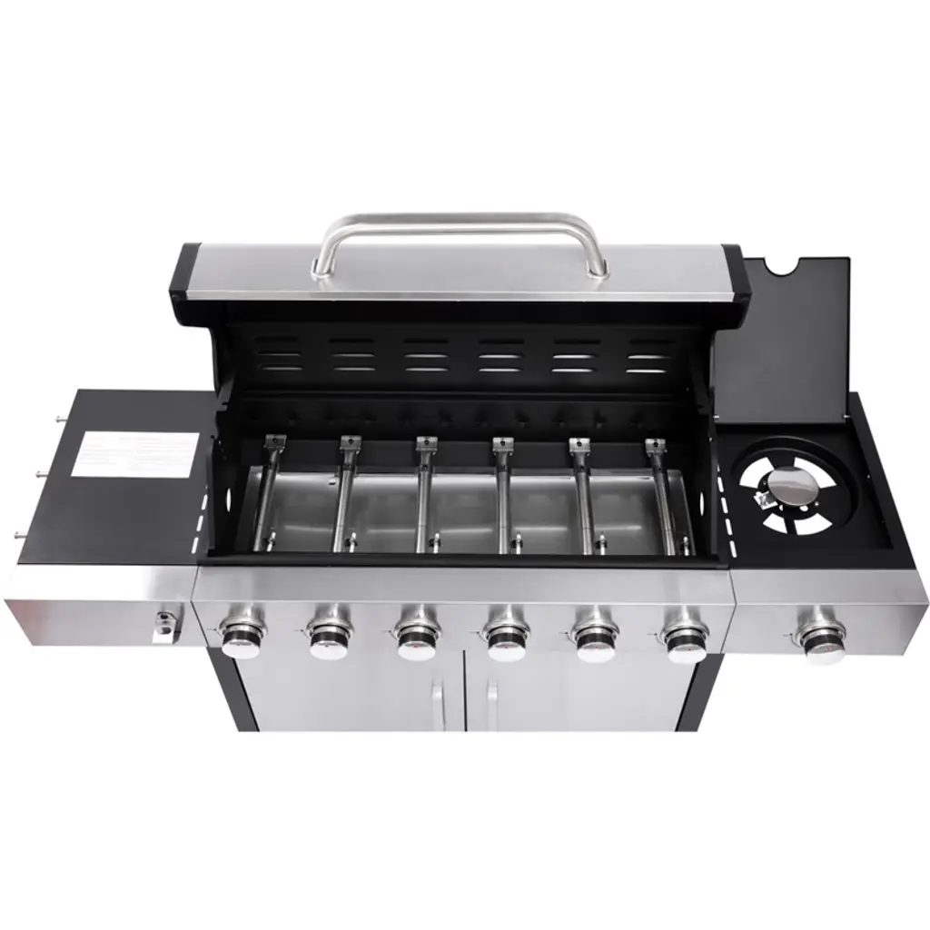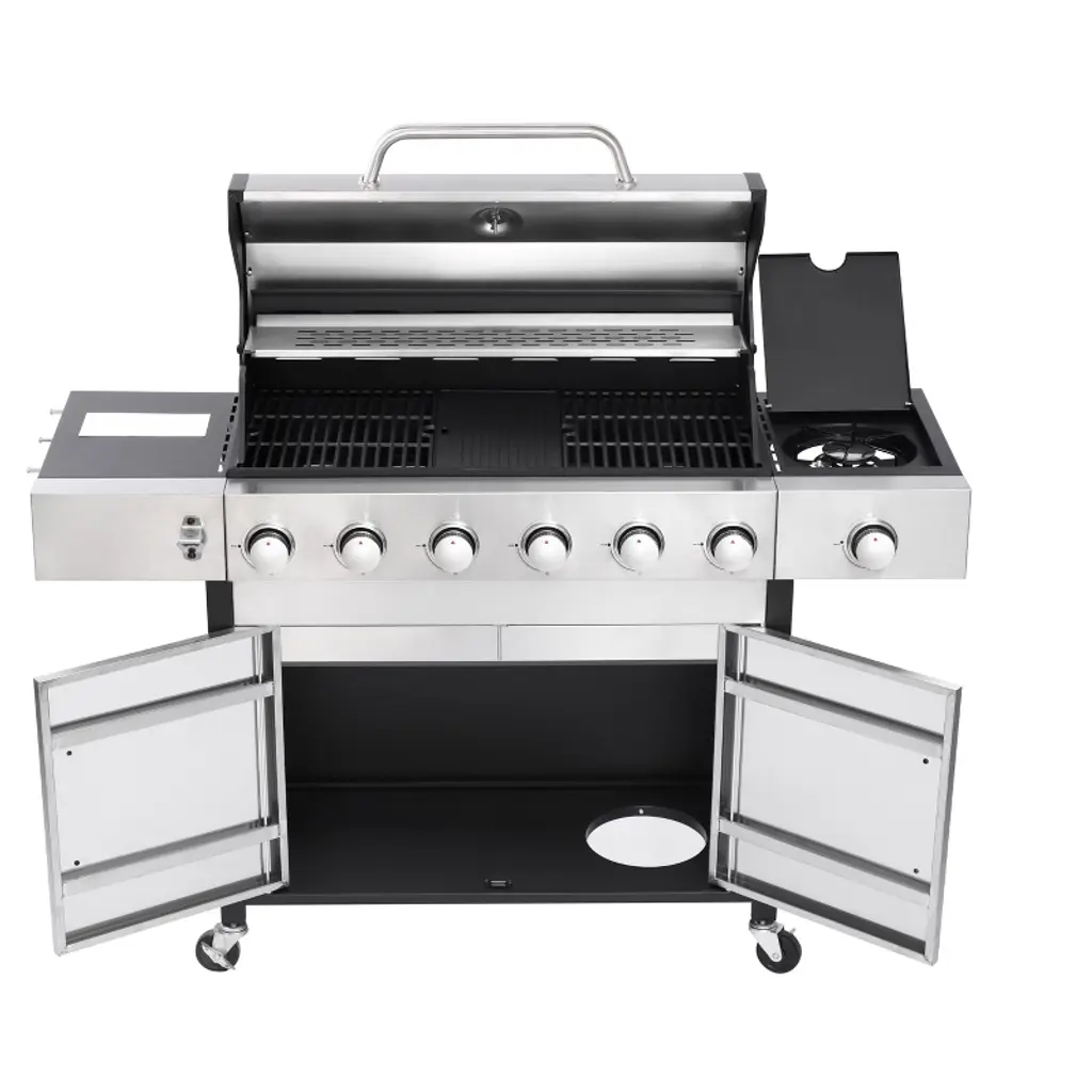 6-burner Propane Gas Grill With Side Burner, Stainless Steel Control Panel, Enamel Firebox, Lockable Casters, 65,910 Btu Outdoor Bbq