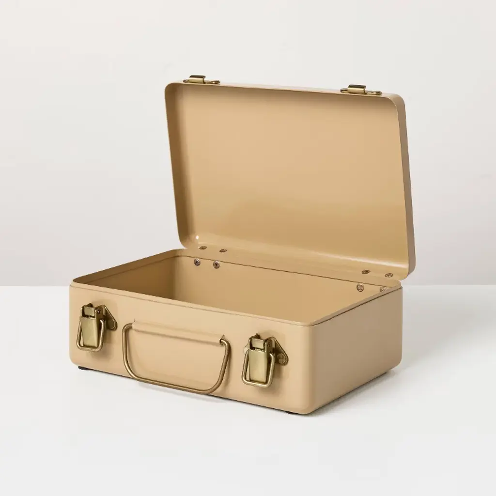 6" Medium Metal Box With Brass Hardware Tan - Hearth & Hand™ With Magnolia