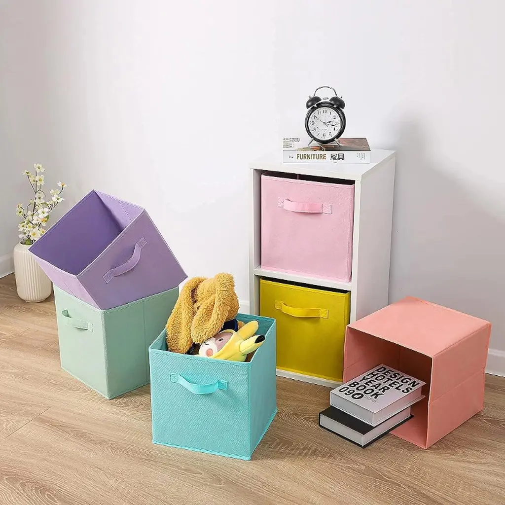 These foldable storage bins add both practicality and style to your home.Perfect for closet organization,toy storage,family activity rooms,laundry areas,and more.These foldable bins are the ideal baskets for tidying up and reducing clutter,enhancing the functionality of your storage space!Measuring 11 inches,these bins feature sewn handles for easy pulling out and placing back into storage.Unmatched in color,organization, and style,these durable and user-friendly storage bins are your ideal choice!From toys on shelves,under coffee tables,or on desks,to laundry in the utility room,these sturdy and flexible bins effortlessly organize with vibrant colors and sturdy handles.