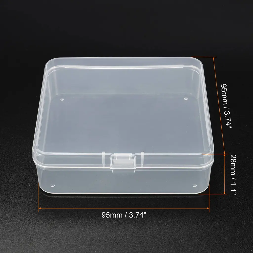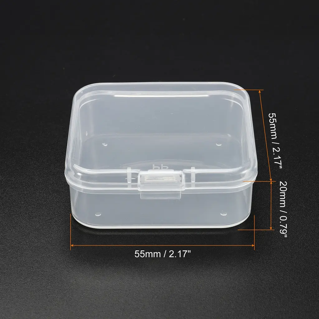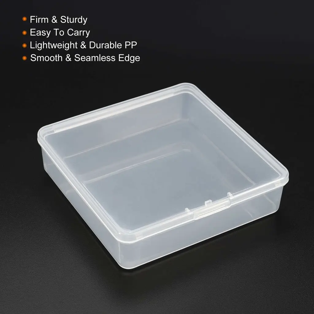 6Pcs Clear Storage Container With Hinged Lid Plastic Square Craft Box - 65x20mm