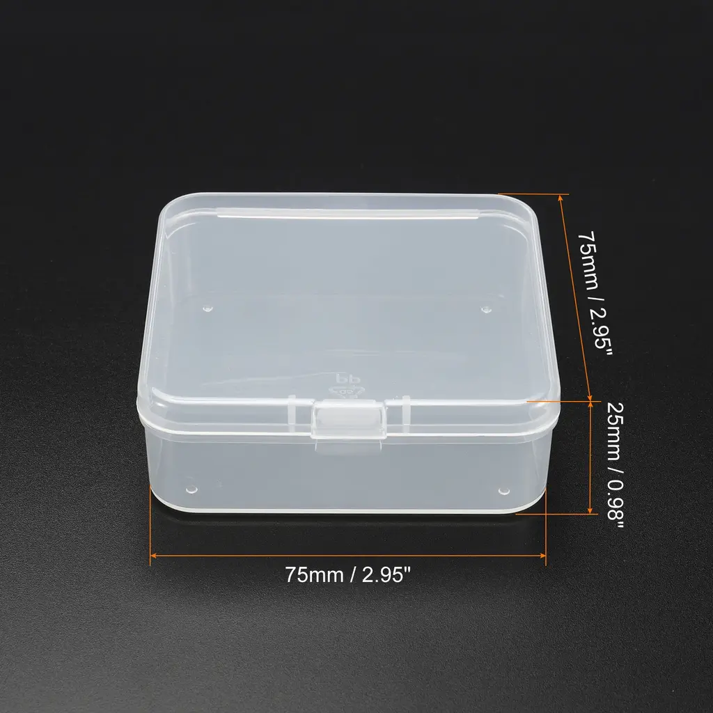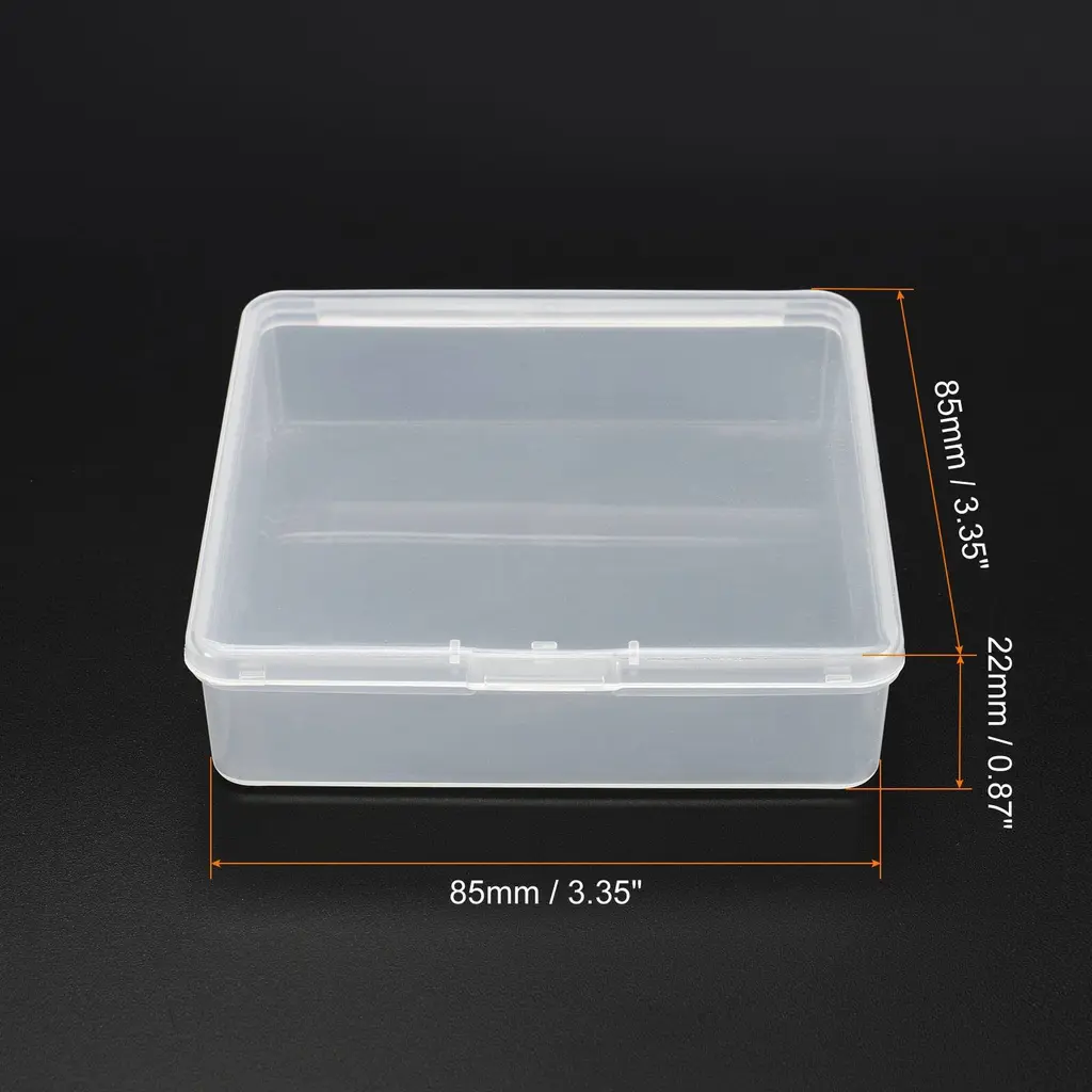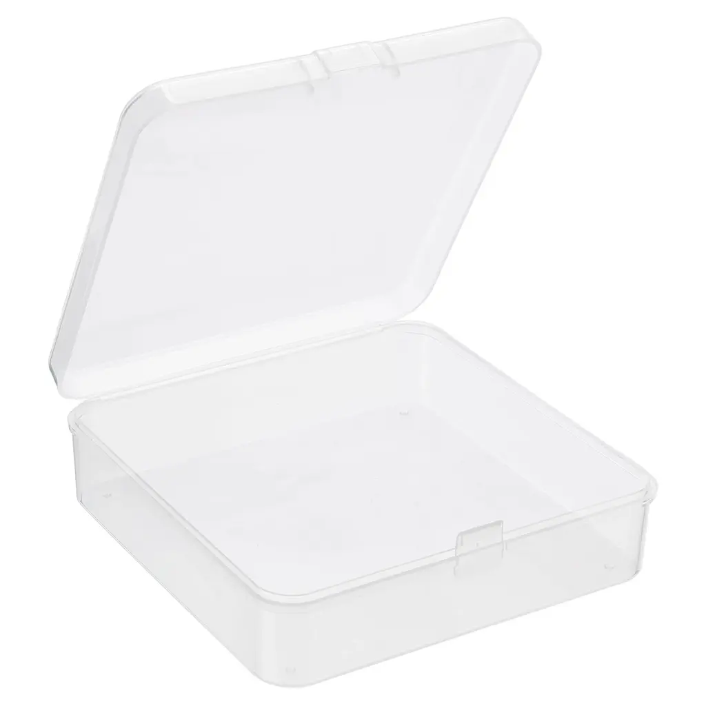 6Pcs Clear Storage Container With Hinged Lid Plastic Square Craft Box - 65x20mm