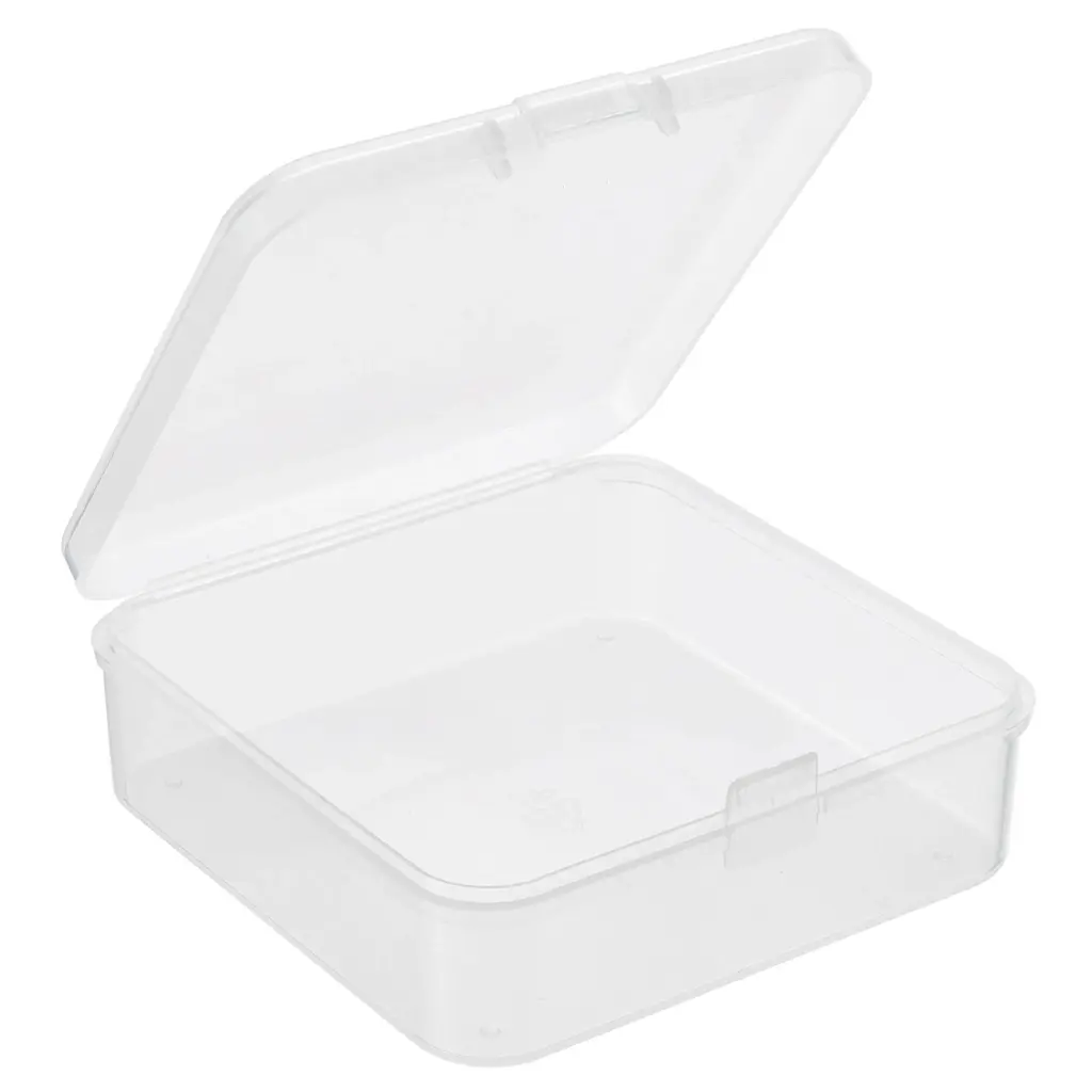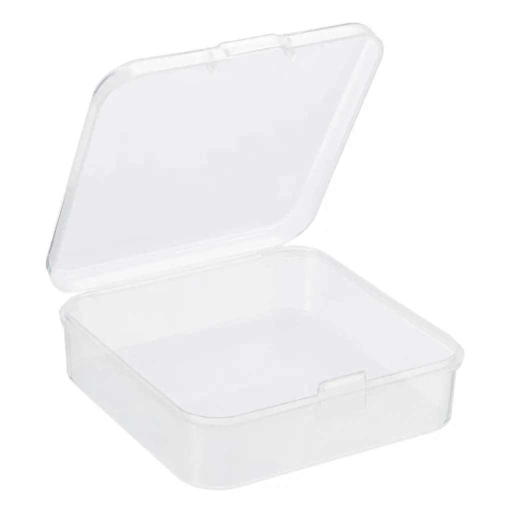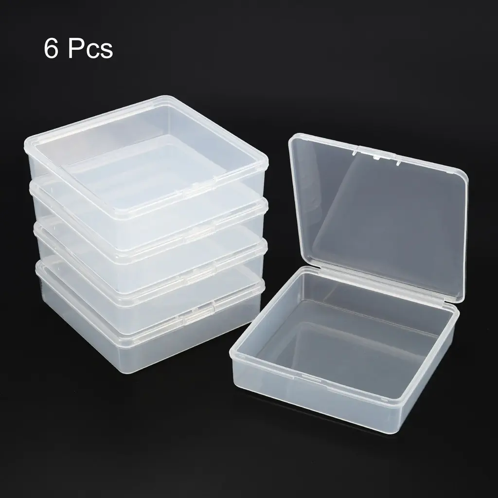 6Pcs Clear Storage Container With Hinged Lid Plastic Square Craft Box - 85x22mm