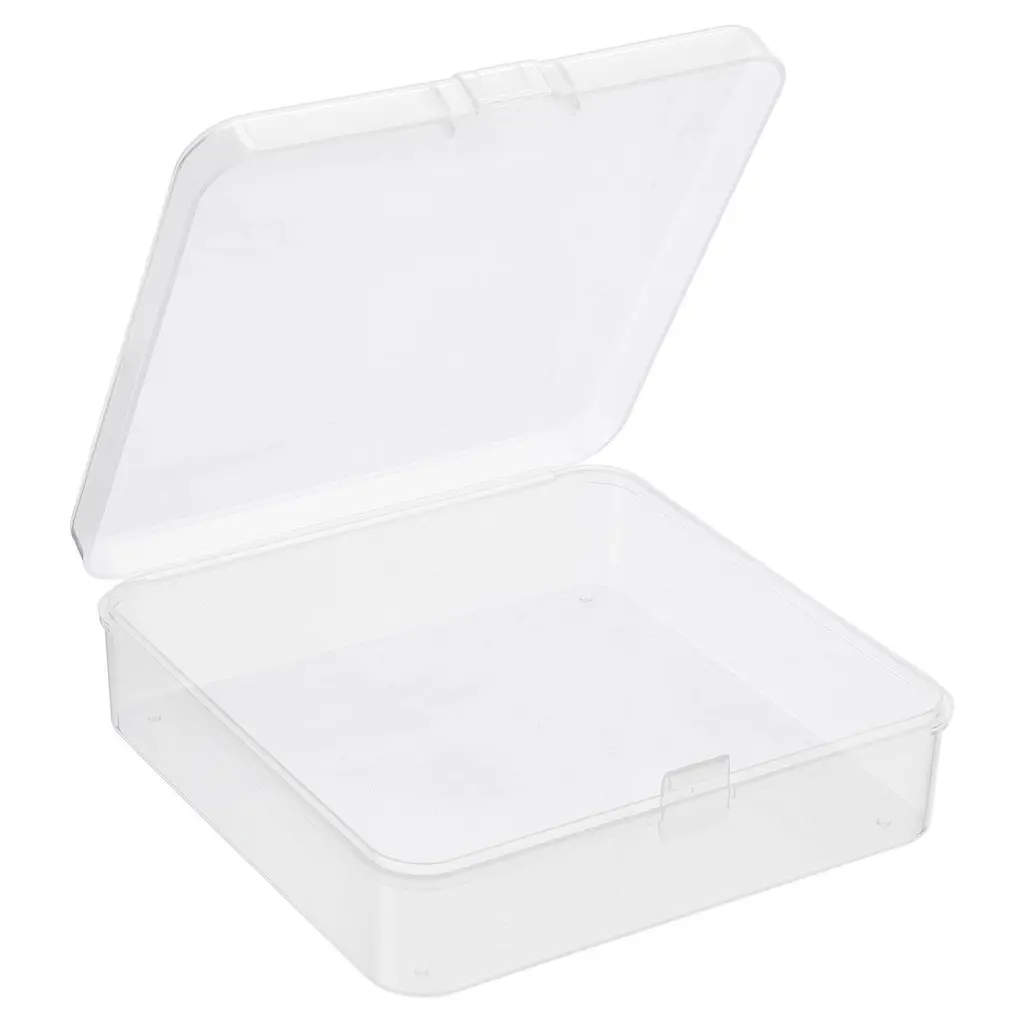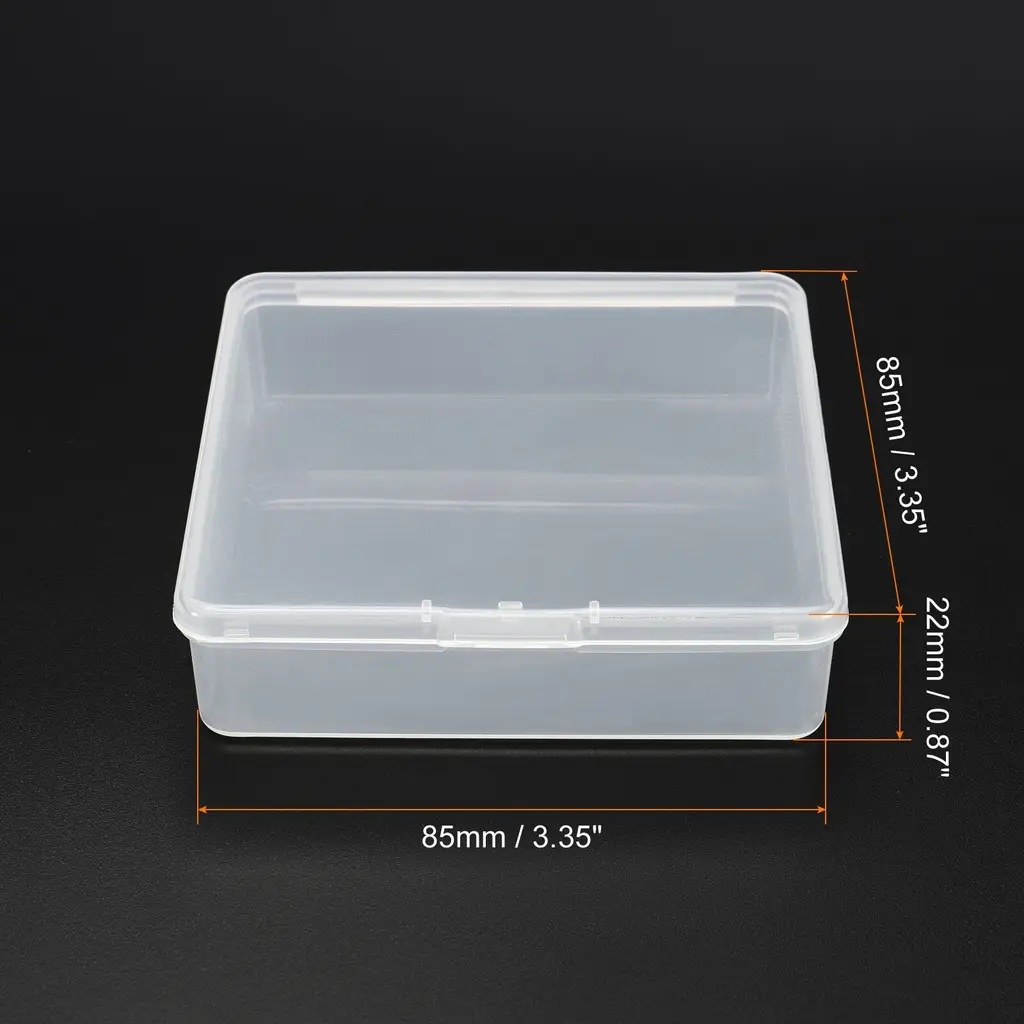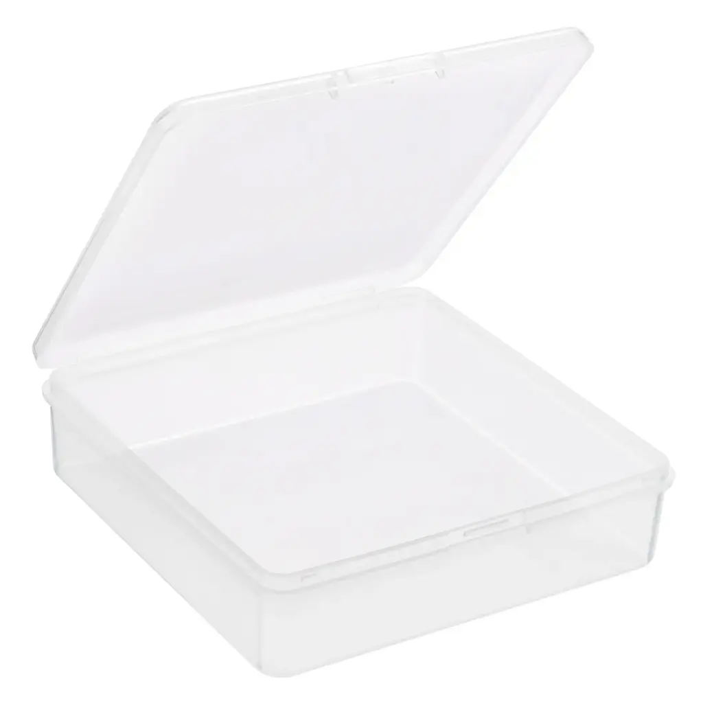 6Pcs Clear Storage Container With Hinged Lid Plastic Square Craft Box - 85x22mm