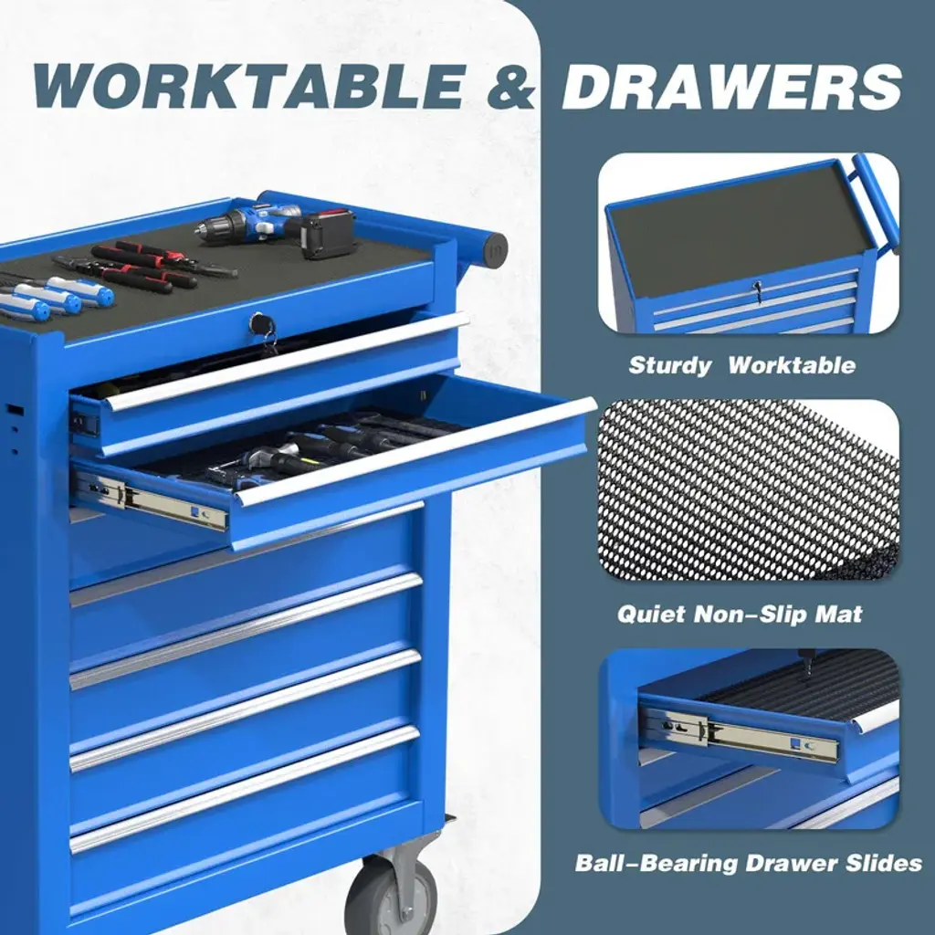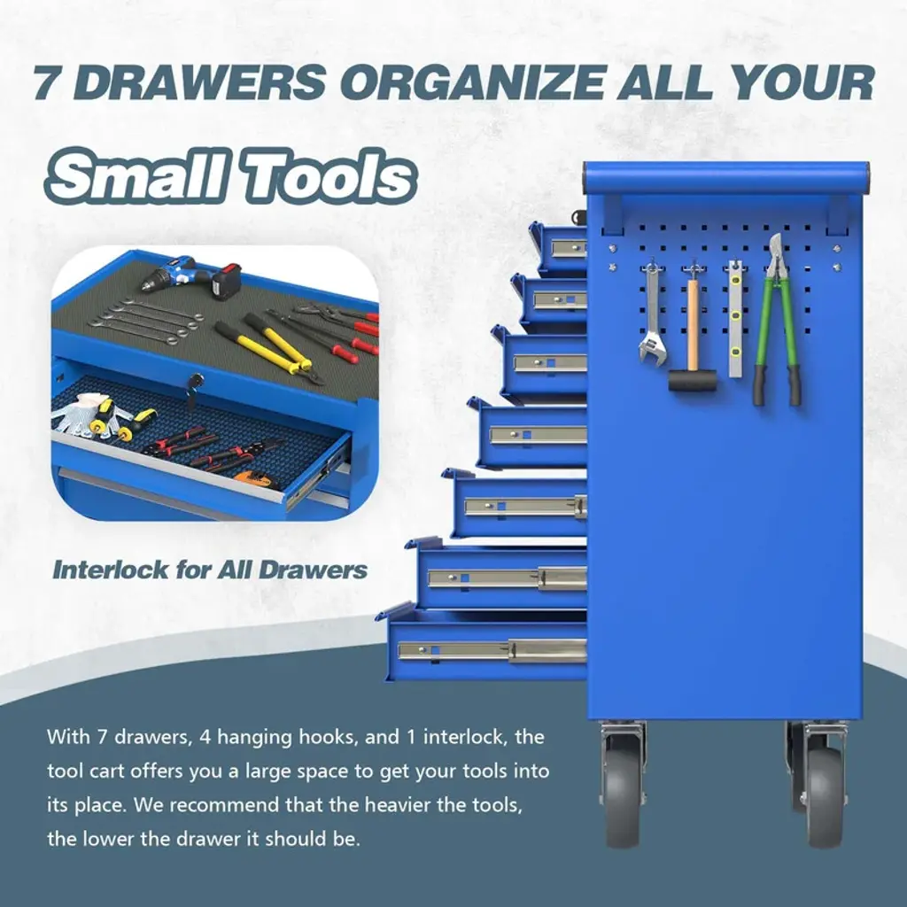 7-Drawer Heavy Duty Rolling Tool Chest Tool Storage Box - N/a - Blue