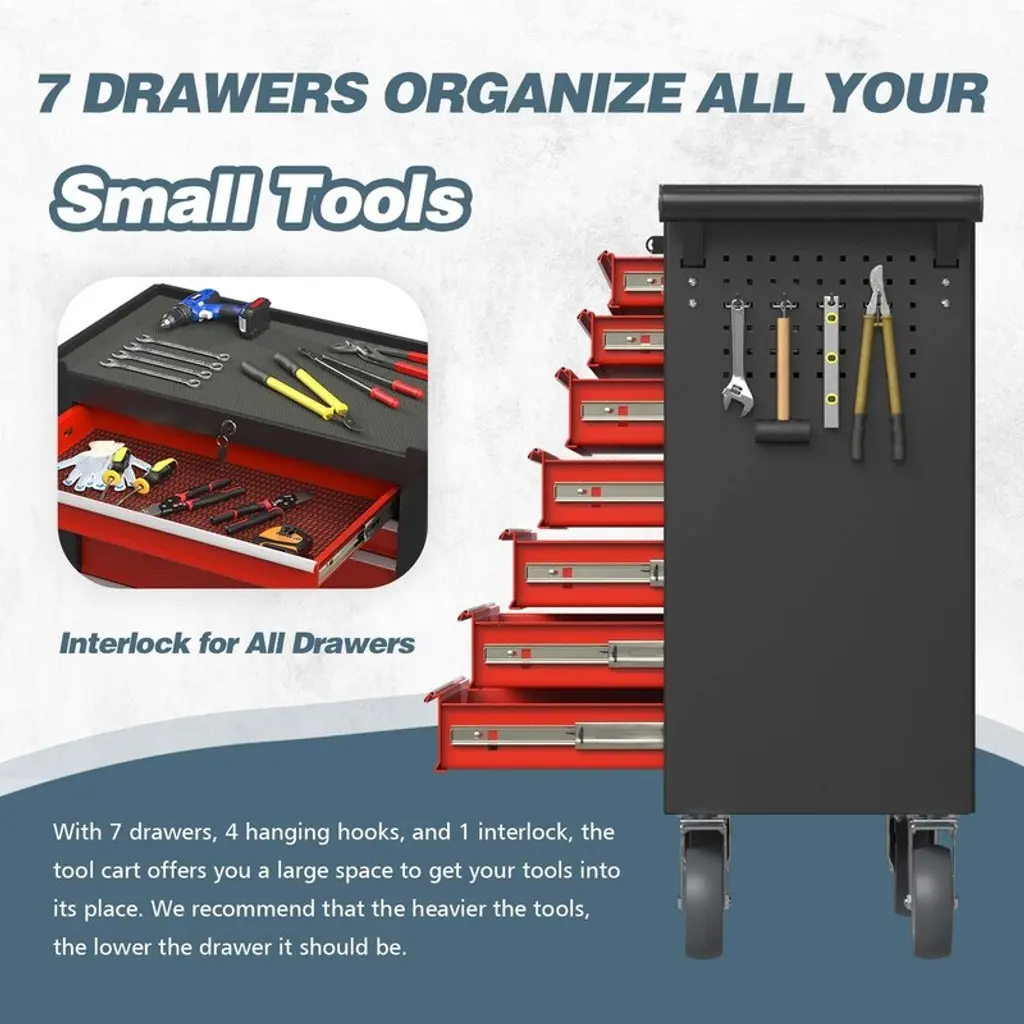 7-Drawer Heavy Duty Rolling Tool Chest Tool Storage Box - N/a - Red/black