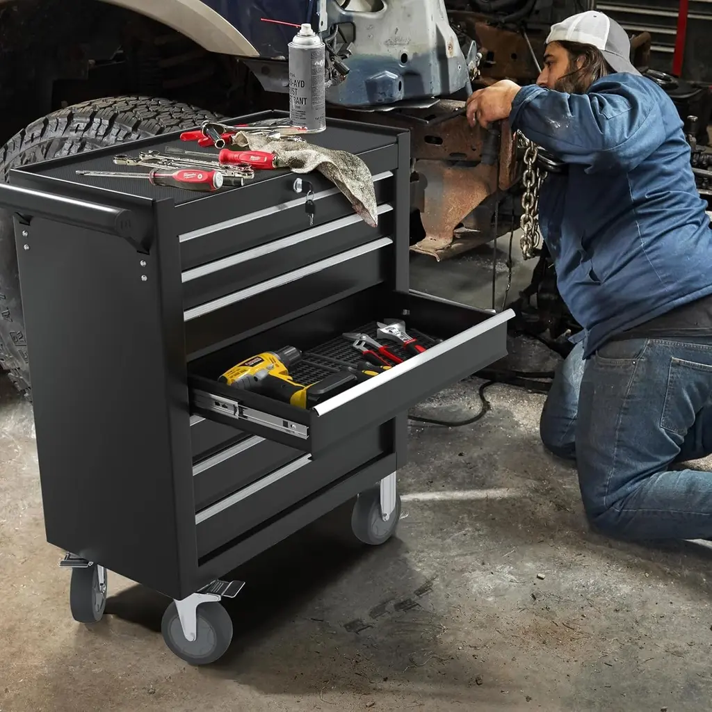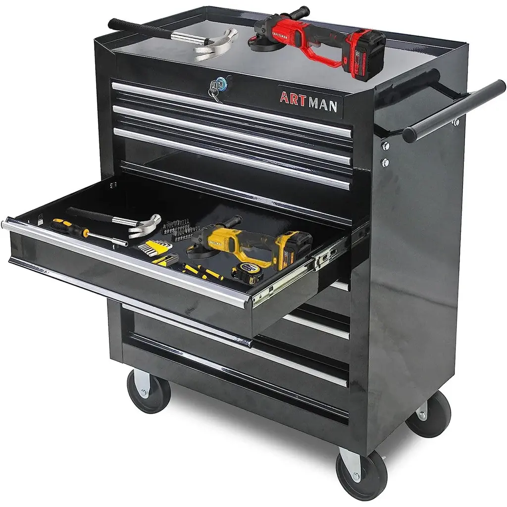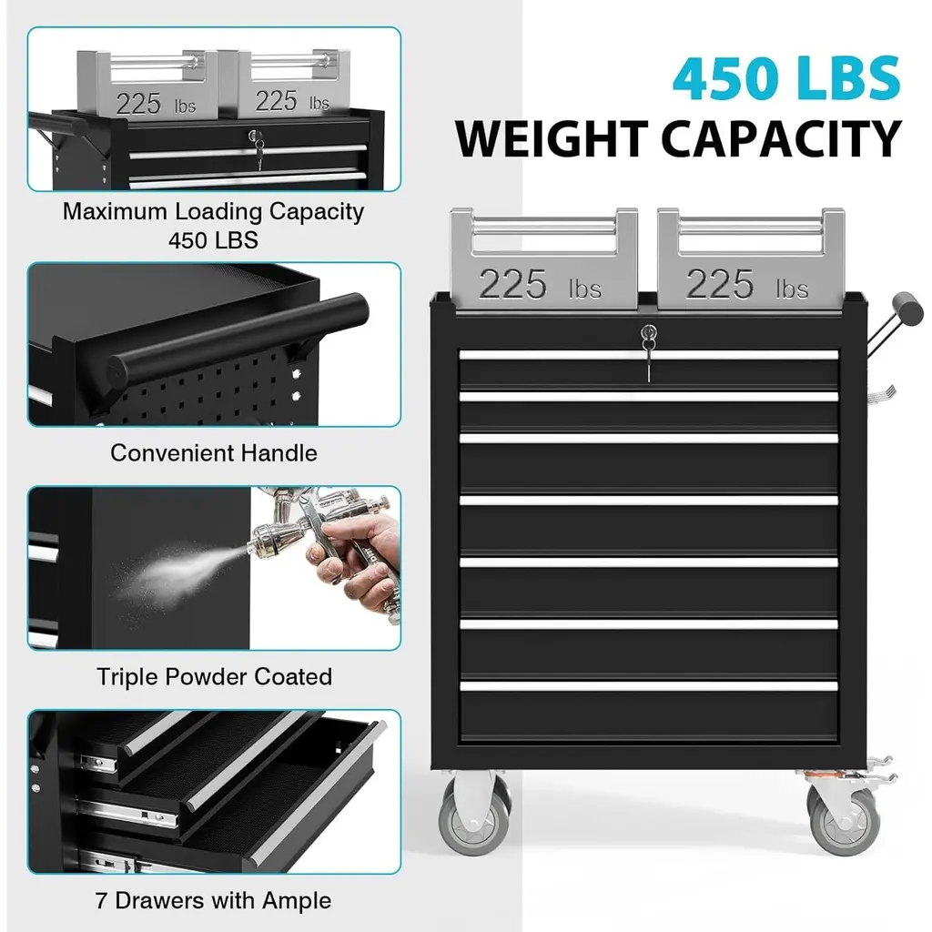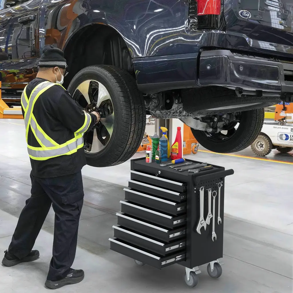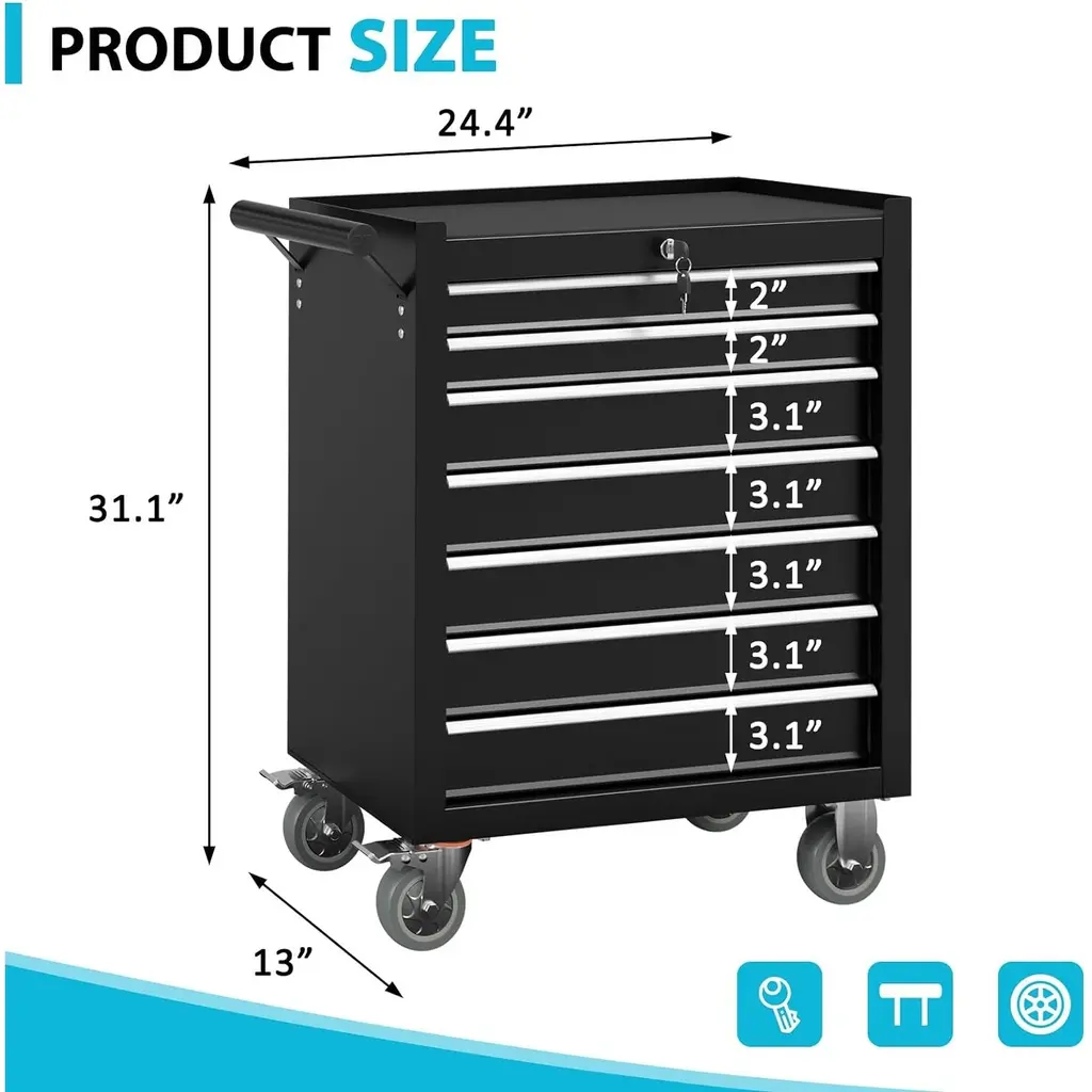 7-Drawer Rolling Tool Chest Toolbox With Keyed Locking - Black