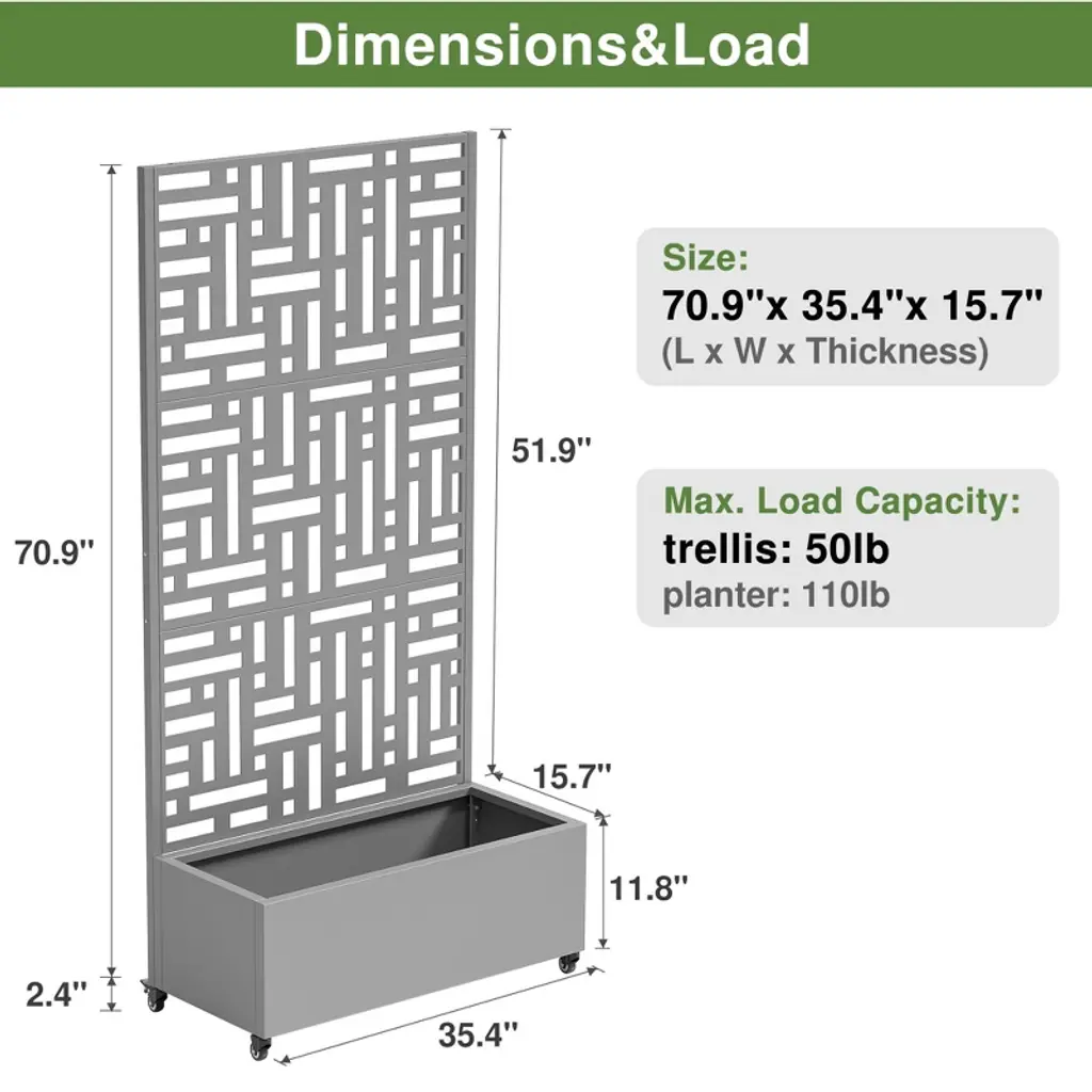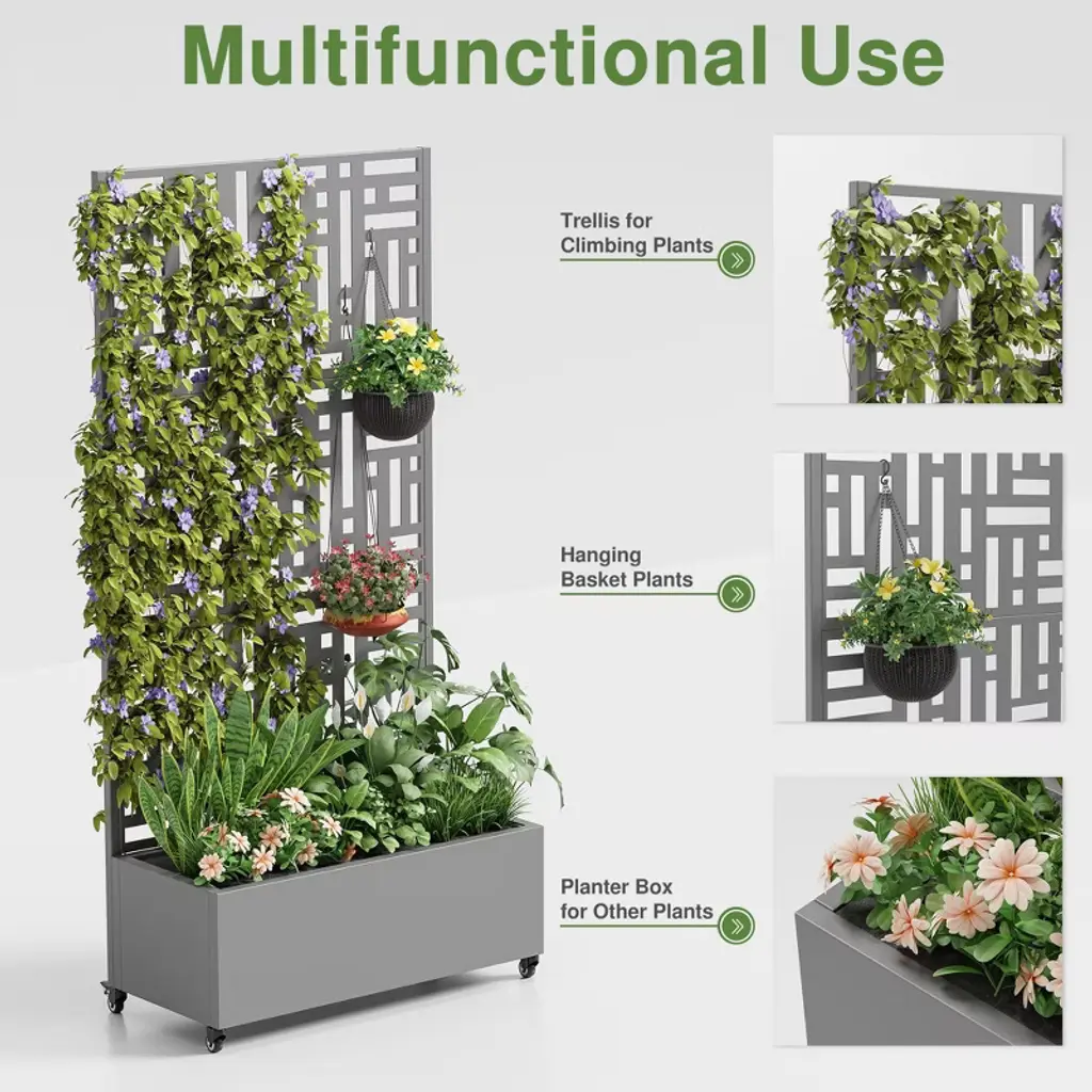Crafted from durable iron, this planting box offers a sturdy and long - lasting solution for your gardening needs. The included climbing frame serves as an ideal support for climbing plants, allowing them to thrive and adding a touch of vertical beauty to your garden. With its elegant design, this garden bed not only enhances the look of your outdoor space but also provides a practical way to grow your favorite plants. Whether you’re a seasoned gardener or a beginner, this raised garden bed with trellis is sure to be a valuable addition to your garden.