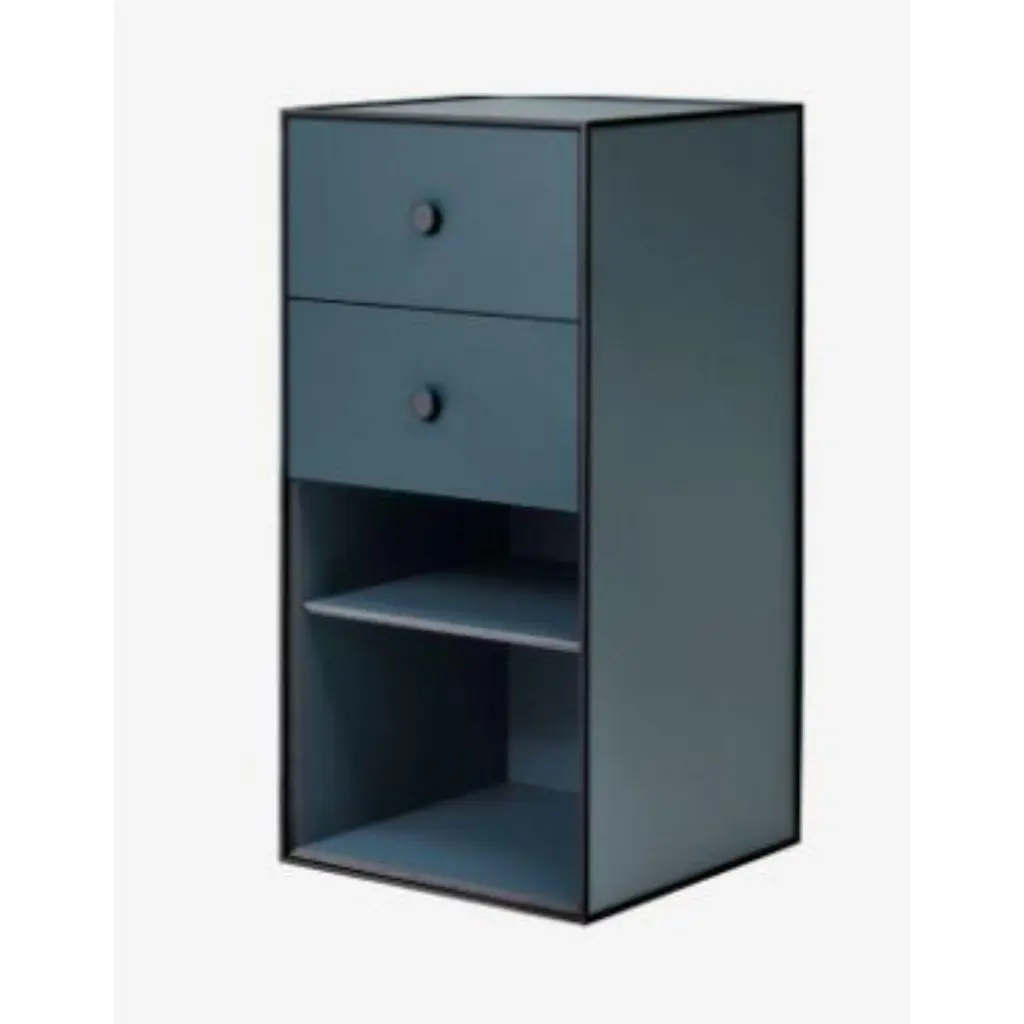 70 Fjord frame box with shelf / 2 drawers by LassenDimensions: D 35 x W 35 x H 70 cm Materials: Finér, Melamin, Melamin, Melamine, Metal, VeneerAlso available in different colors and dimensions. Weight: 13 KgBy Lassen is a Danish design brand focused on iconic designs created by Mogens and Flemming Lassen, founded by Lassens’ relatives in 2008. Brothers Mogens (1901-1987) and Flemming (1902-1984) Lassen are known as two of Denmark’s greatest architects and designers. Both were renowned pioneers of Danish functionalism and modernist architecture, honoured with numerous prestigious medals and awards. Headed by Mogens Lassen’s grandson Søren Lassen, By Lassen carries on the brothers’ design philosophy by manufacturing their iconic designs as well as products by other designers that complement the Lassen’s functionalist style. The company’s mission is to continue the tradition of timelessness, functionality and quality, and to introduce the Lassen’s design heritage to new generations.