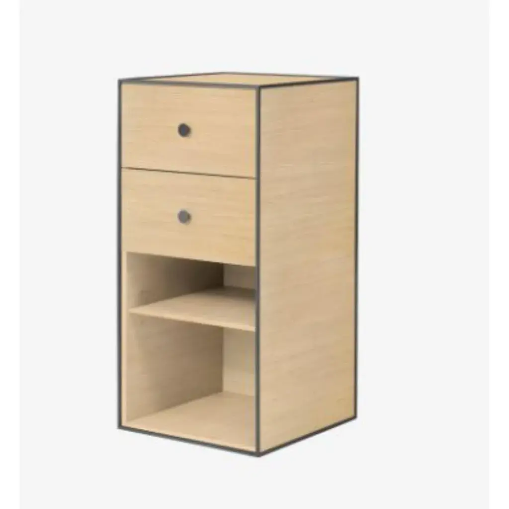 70 Oak frame box with shelf / 2 drawers by Lassen Dimensions: D 35 x W 35 x H 70 cm Materials: Finér, Melamin, Melamin, Melamine, Metal, Veneer, Oak Also available in different colors and dimensions. Weight: 13 Kg By Lassen is a Danish design brand focused on iconic designs created by Mogens and Flemming Lassen, founded by Lassens’ relatives in 2008.