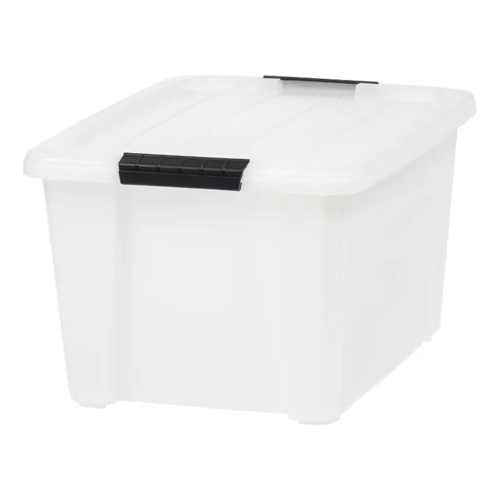 Organization is made easy with the Brightroom 70 Quart Clear Storage Bin with lid! The clear base lets you see what's inside while the snap-on lid keeps everything contained. The space-efficient shape and deep recessed lids allow bins to stack securely, maximizing vertical storage space. Sort and store a variety of household items to bring order to closets, bedrooms, and more! Ideal for storing such things as blankets, towels, seasonal clothing, and games. Note: Use good judgment when storing items, don’t overload, keep heaviest bin at bottom, and don’t stack too high. The overall assembled dimensions of this item are 22 7/8" L x 16 5/8" W x 14 5/8" H. Brightroom™: See your space in a new light.