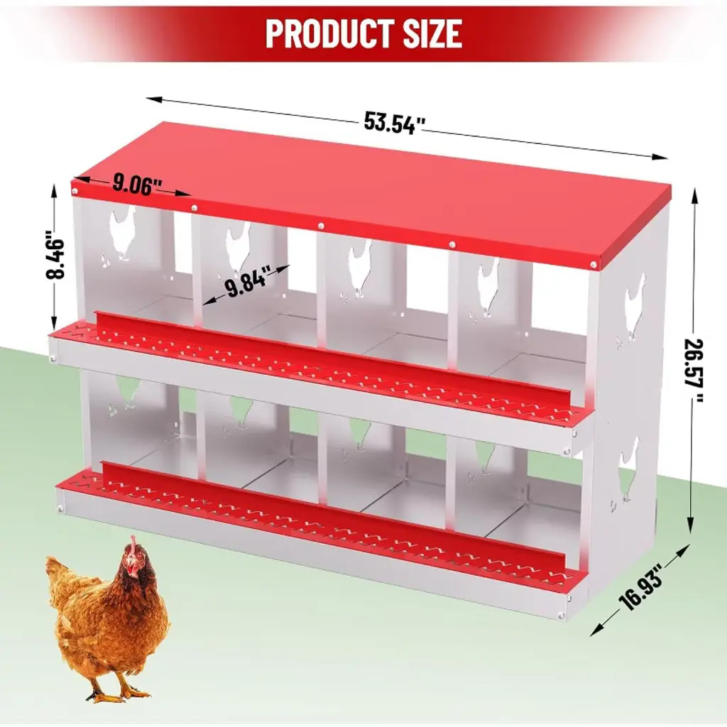 8 Compartments Metal Chicken Nesting Boxes, Nesting Boxes, Chicken Laying Box With Roll Out Egg Collection With Vented Holes