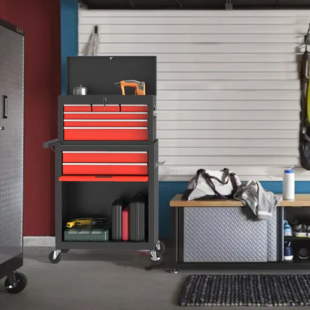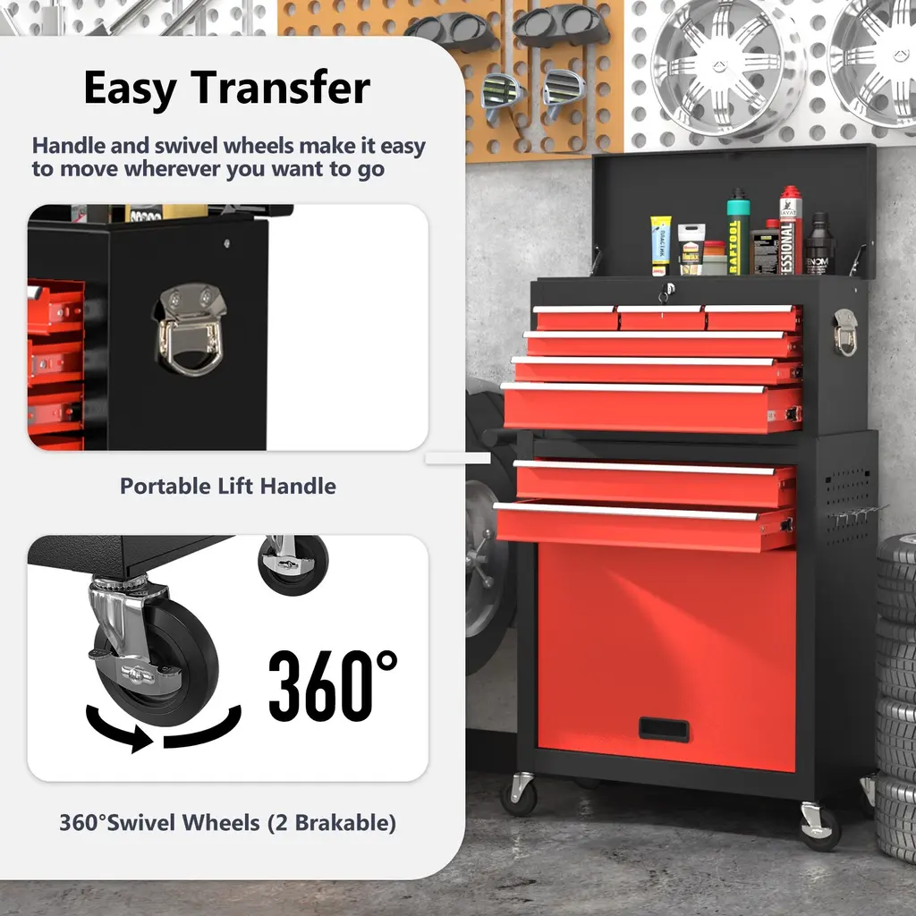 8-Drawer Rolling Tool Chest & Removable Tool Box Organizer With Lock - Red/black