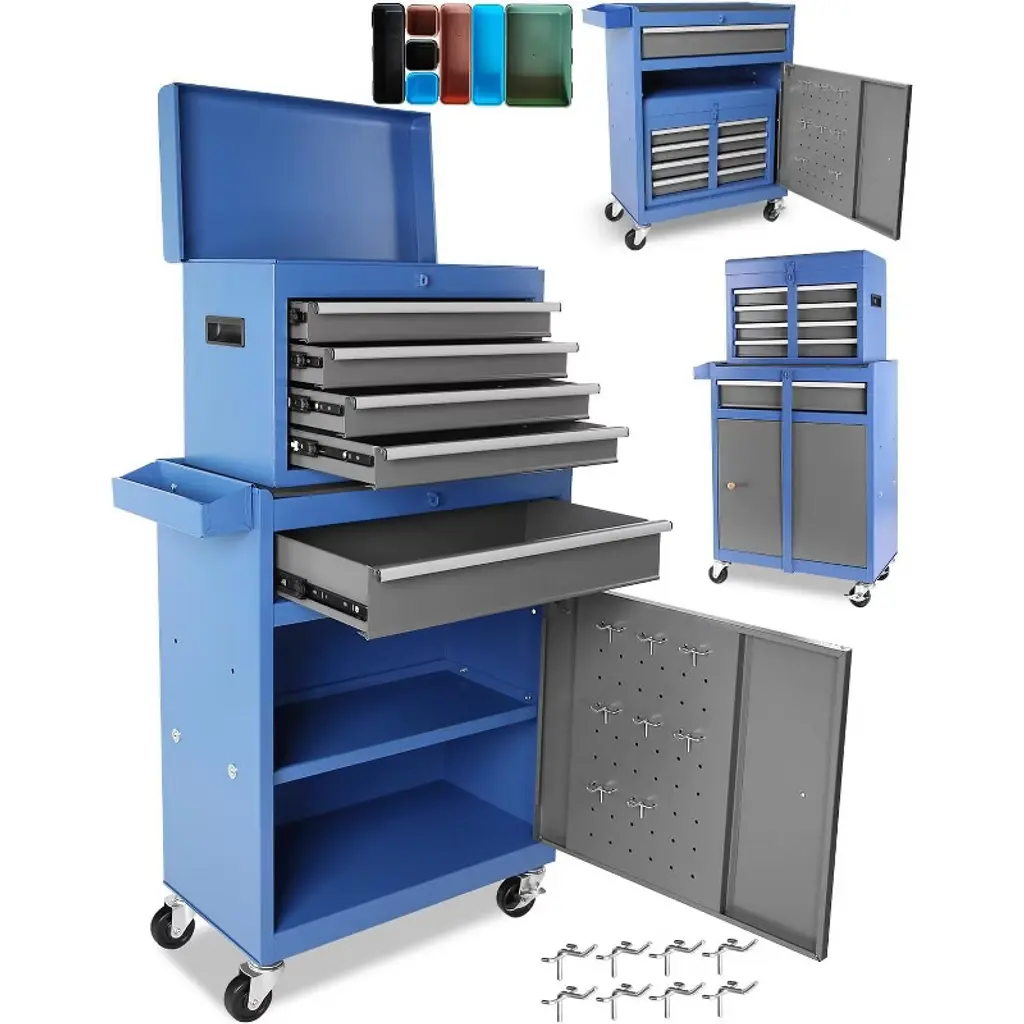 8-Drawer Rolling Tool Chest High Capacity Tool Box Storage Cabinet With Drawers Wheels - Blue