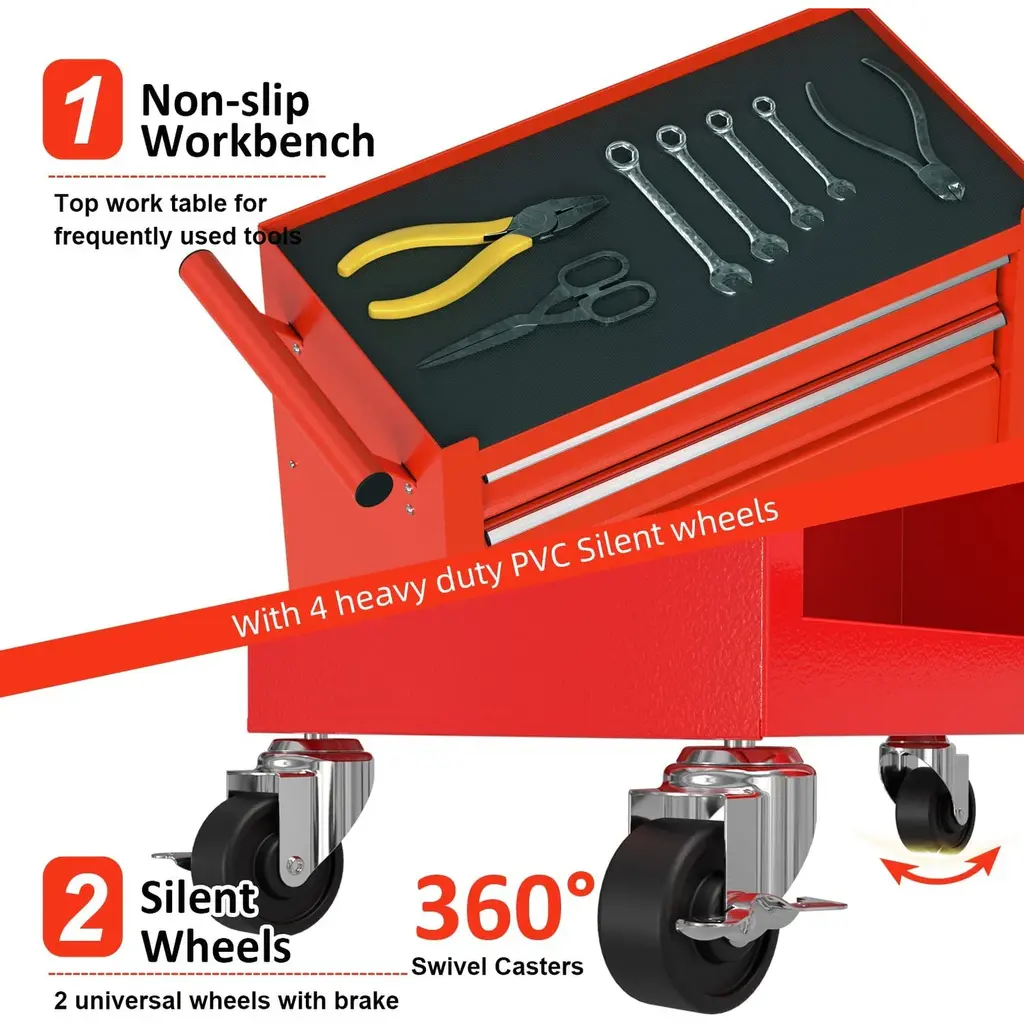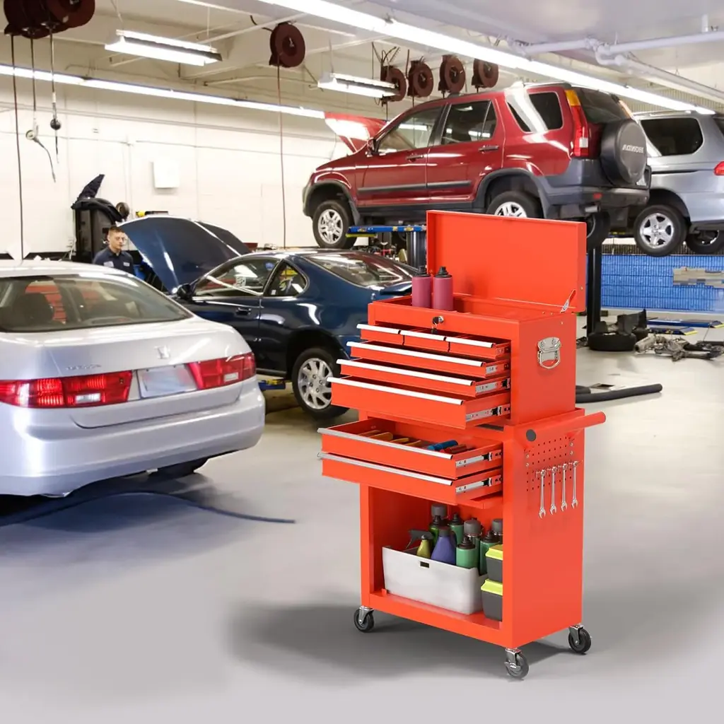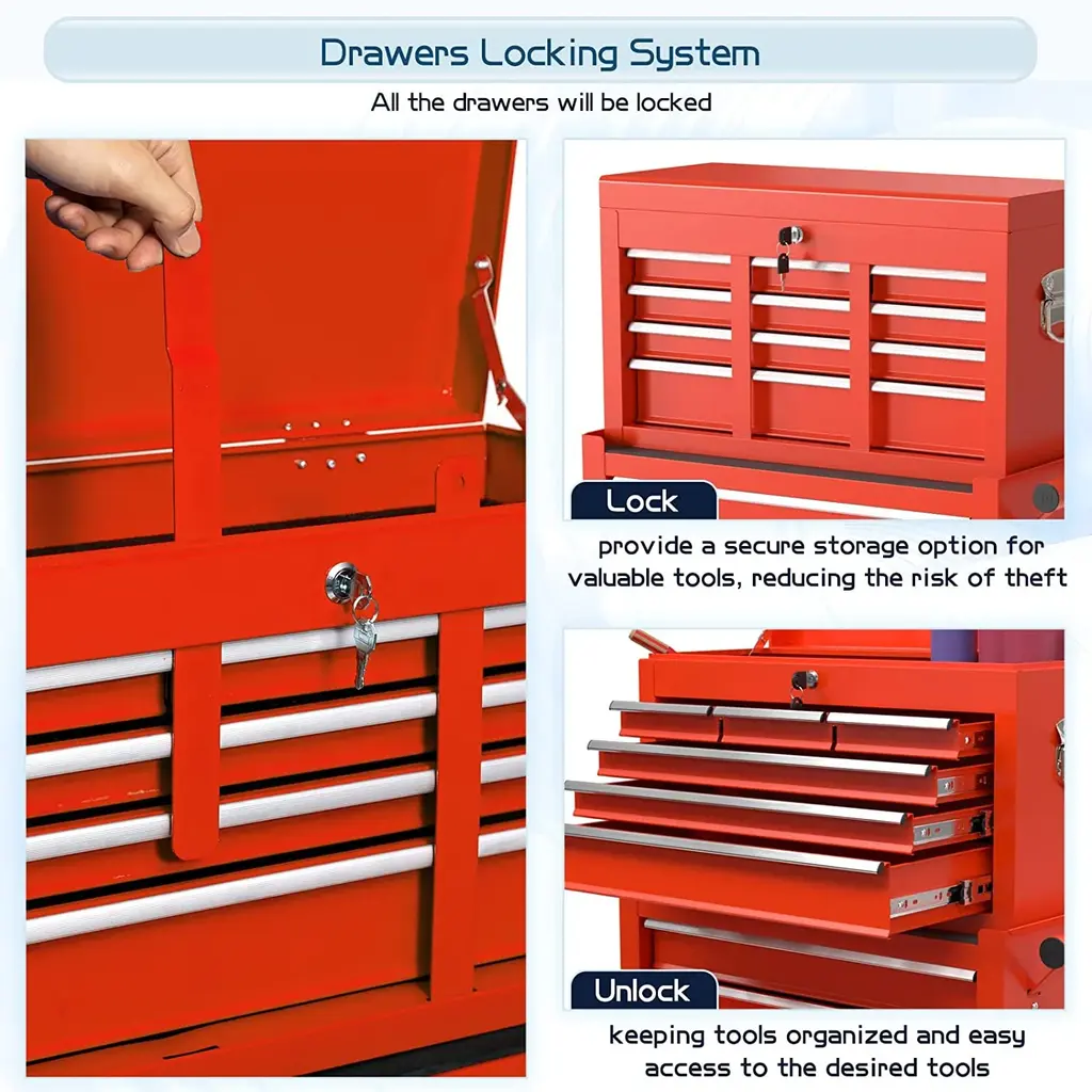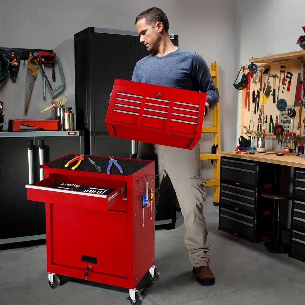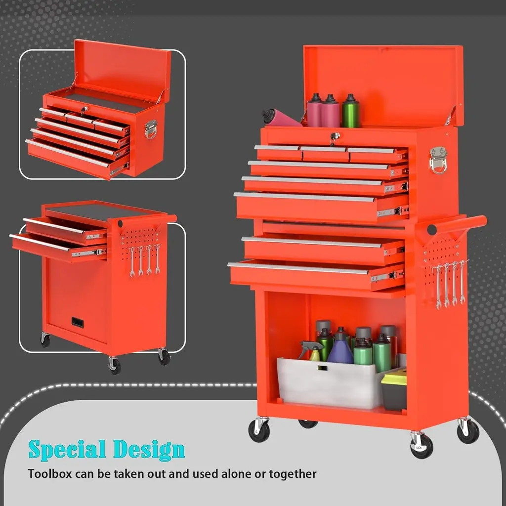 8-Drawer Rolling Tool Storage Cabinet With Detachable Top Tool Box - Red