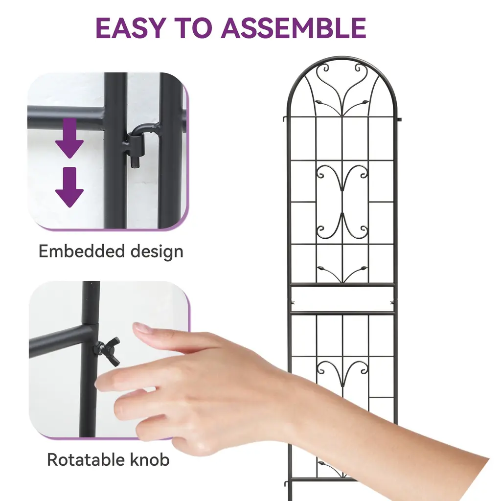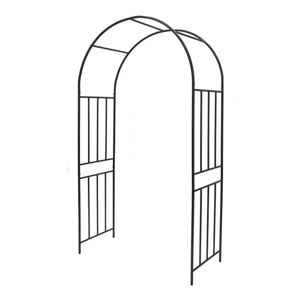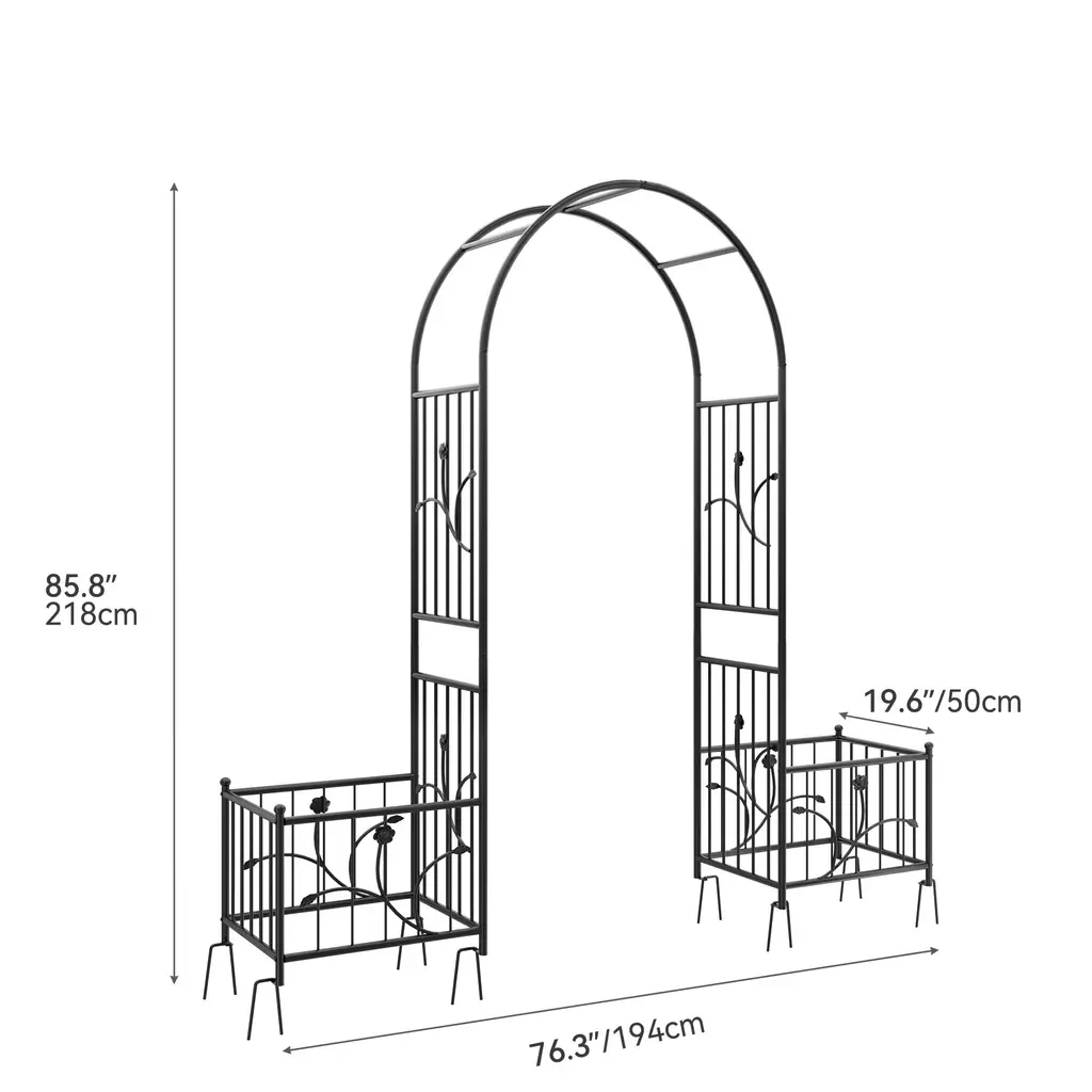 Side planter boxes of the garden arbor are attached to grow beautiful flowers for a gorgeous display. Works great as an entrance to your courtyard. Decorate this garden arbor at will with climbing plants or other decor such as roses, honeysuckle, clematis, jasmines, balloons, tulle, lace mesh, or even with a string of lights.And an elegant and practical piece that is suitable for all occasions including weddings,anniversaries, ceremonies, parties, and casual get-togethers. Great for gardens, backyards, lawns, beaches, hotels, etc. Sturdy steel tubing is treated with weather-resistant black epoxy to ensure stability and prolonged outdoor use. The reinforced supporting frame at the bottom features ground stakes so that the garden arch can withstand weather elements. Lightweight with straightforward construction, comes with instructions for simple assembly that can be completed by two people within 10 min.