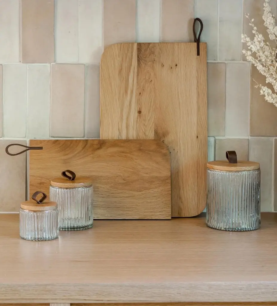 Add some personality to your home decor with Abbey Canisters! These handblown glass containers come in a set of 3, with sizes perfect for any storage need. Use them in the bathroom, kitchen, or even for your jewelry! Lightweight yet sturdy, these canisters are also food safe. Small - 3.5" L x 3.5" W x 2.5" H, 7.6 oz CapacityMedium - 4" L x 4" W x 4" H, 20.29 oz Capacity Large- 5" L x 5" W x 5.5" H , 46.65 oz Capacity