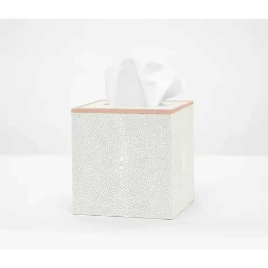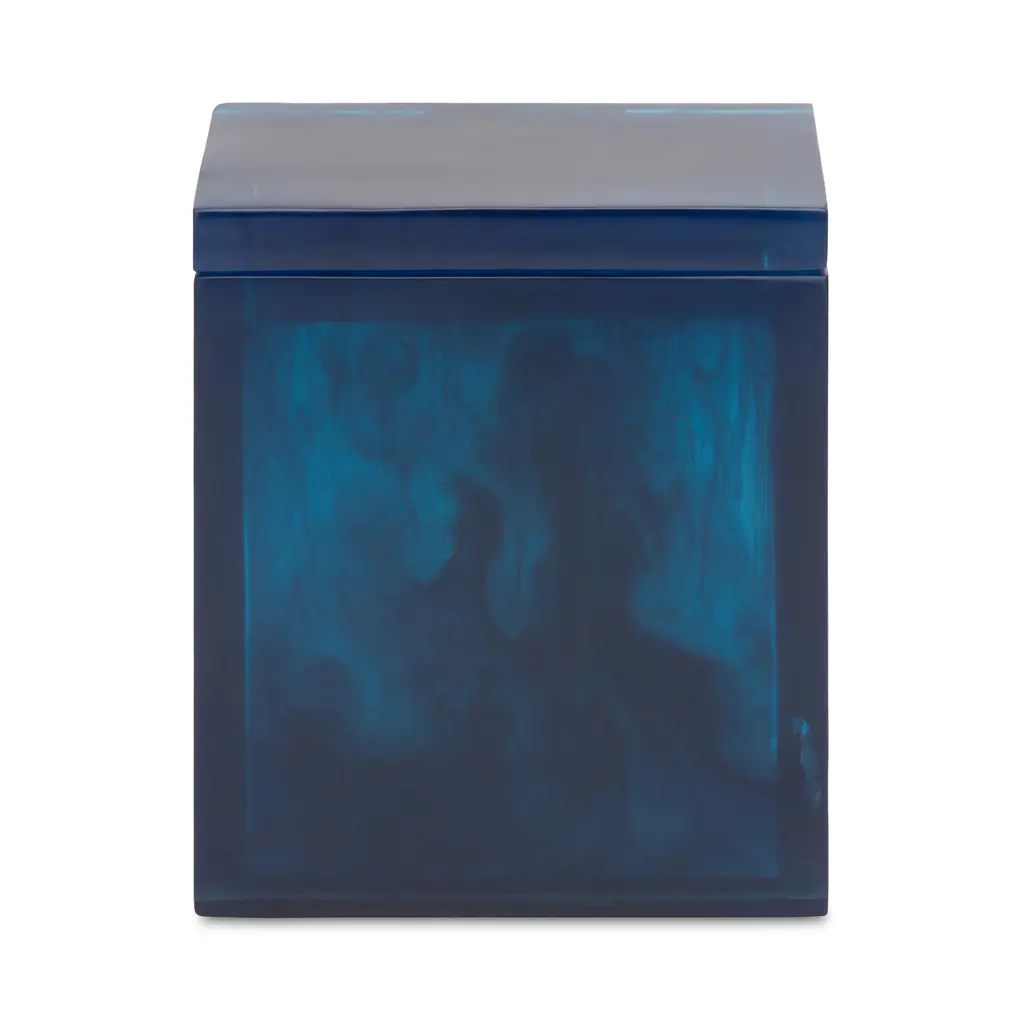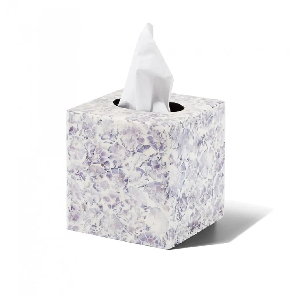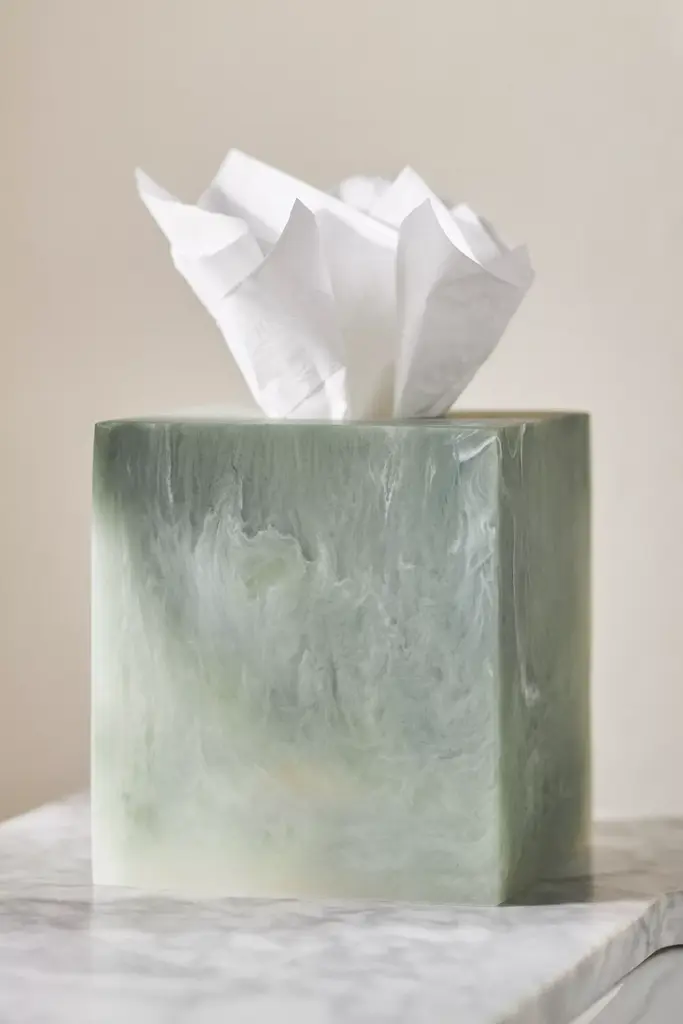 A collection of bathroom wares in semi-translucent, swirling cast resin.