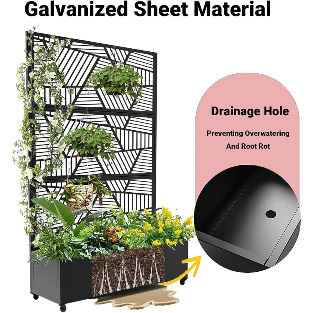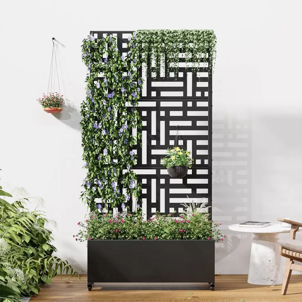 Acekool 72" Outdoor Privacy Screen With Planter Box - 3-panel Trellis For Climbing Plants (Black/white)