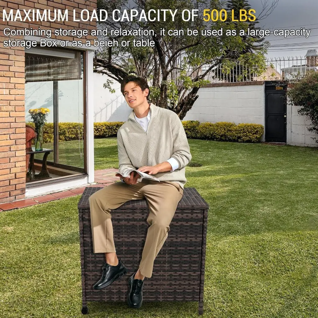 The Acekool 80-gallon outdoor deck storage box is designed to organize and protect your outdoor items with style and ease. Made from eco-friendly resin, it offers waterproof and UV-resistant protection to keep contents safe through all seasons. Its spacious interior fits cushions, garden tools, pool accessories, and more, helping maintain a clutter-free outdoor space. Reinforced with metal rods and thicker panels, the box supports heavy loads and resists warping for lasting use. Safety features include a hydraulic lid for smooth opening and a locking system to secure your belongings. Assembly is straightforward with no tools required, and ergonomic handles plus wheels make transportation simple. Specifications: Dimensions: 30" Length x 30" Width x 24" HeightCapacity: 80 gallonsWeight Capacity: Supports up to 300 lbsMaterial: Eco-friendly, weather-resistant resin with UV protectionFeatures: Lockable lid, hydraulic lid support, wheels, and side handlesUse: Suitable for garden, patio, poolside, and backyard storage