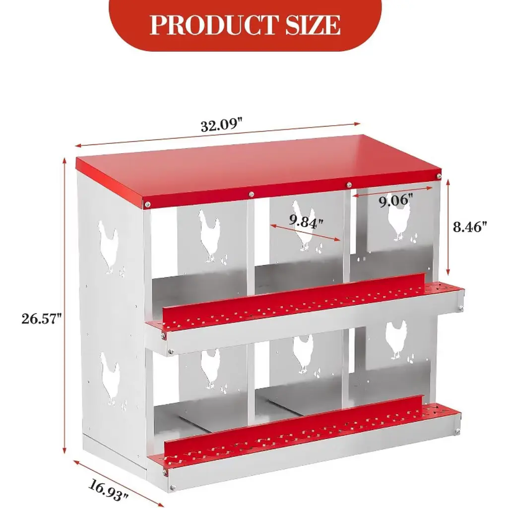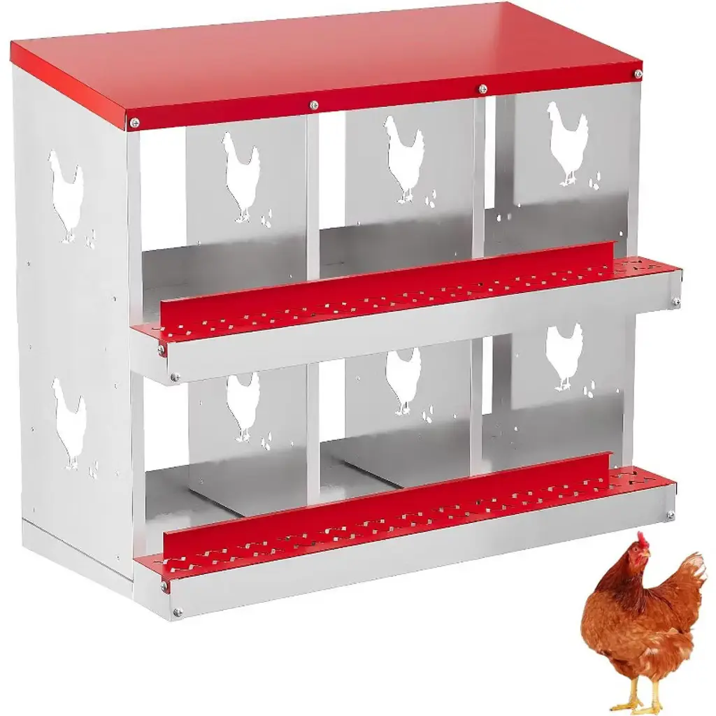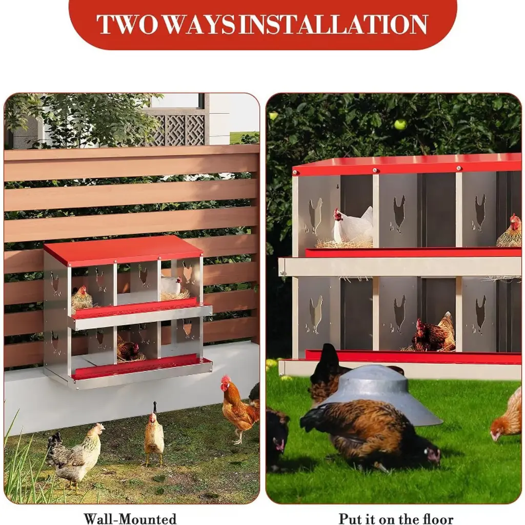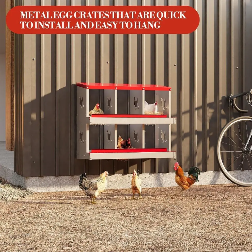 Acekool Chicken Nesting Box, 6-compartment Metal Laying Box With Roll Out Egg Collection, Wall Mount, Easy Access Hen Roosting Boxes
