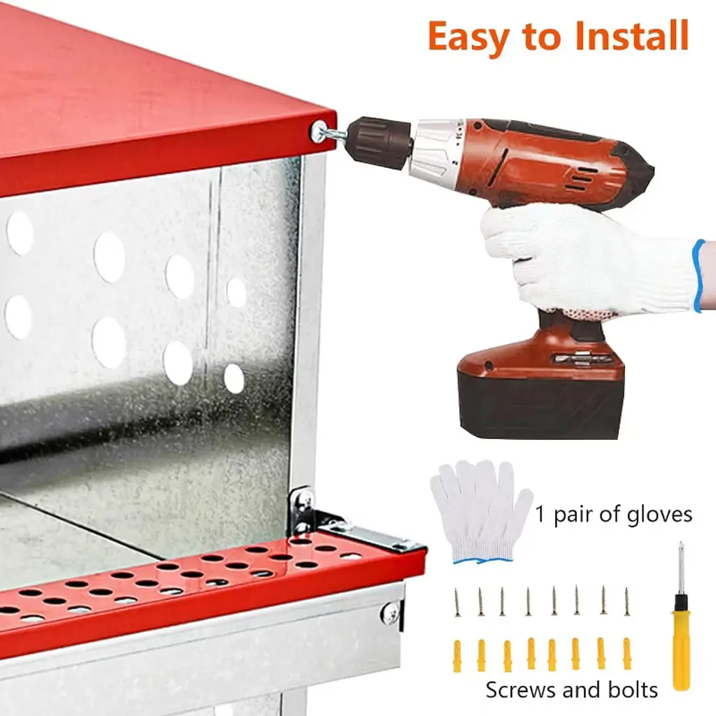 Description: Acekool’s 6-Hole Metal Chicken Nesting Boxes offer a durable, efficient way to collect eggs from backyard chickens and ducks. Built from reliably rustproof galvanized steel, this wall-mount nest box provides a comfortable, private, and tidy space for hens to lay their eggs while making daily egg collection simple. The six-hole design fits seamlessly into most chicken coops, helping keep your poultry area neat and organized while making chores easier for you. Features: Every hole is generously sized, giving hens the comfortable nesting environment they need. The wall-mounted configuration saves floor space and cleans up coop organization by keeping nesting spots off the ground. Ventilation holes along the box improve airflow, supporting healthy birds and minimizing unpleasant odors. Each compartment has a lid that lifts for easy egg collection and fast cleaning. Smooth surfaces allow you to maintain high hygiene standards, crucial for the health of your flock. Specifications: Includes one 6-hole galvanized steel nesting box, all mounting hardware, and instructions. Each hole measures approximately 33" L x 13.4" W x 24.4" H, designed to accommodate hens or ducks comfortably. Features ventilation openings, wall-mount construction, and easy-access hinged lids for egg collection and cleaning.