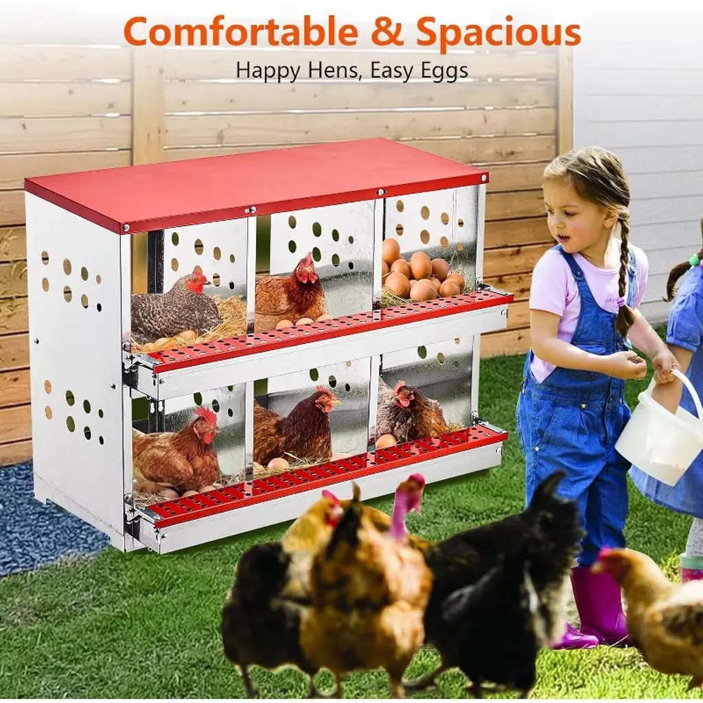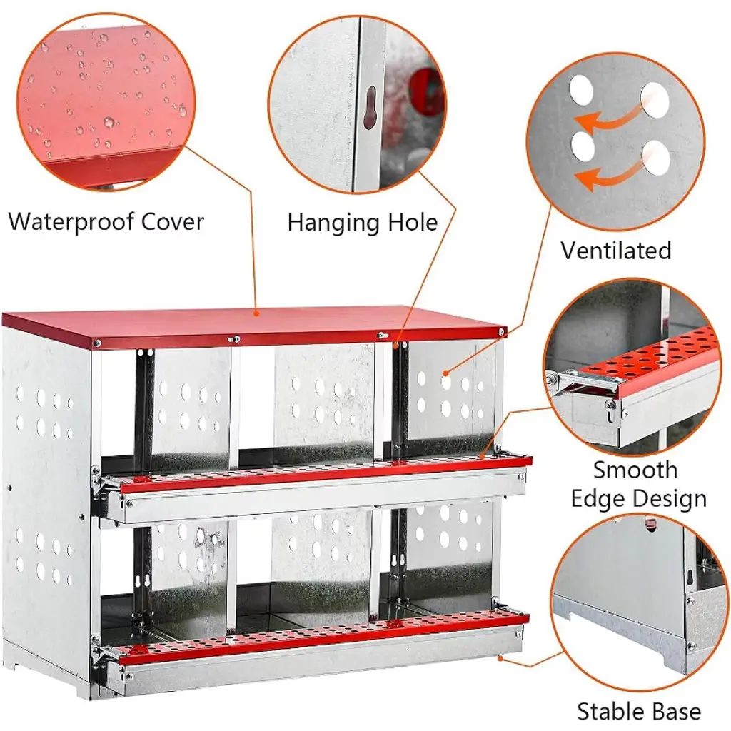 Acekool Chicken Nesting Boxes, 6-hole Galvanized Metal Wall Mount Nest Box For Hens, Ducks, Easy Egg Collection, Ventilated, 33"