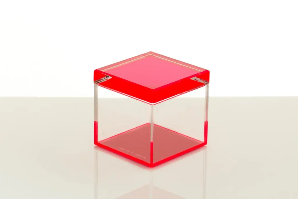 The Cubic Treasure Box in Red by Alexandra Von Furstenberg a striking fusion of modern design and functional elegance. Crafted from premium acrylic, this 5" cube is perfect for showcasing your cherished items, from jewelry and trinkets to keepsakes and candies. Its sleek silhouette and vibrant Red hue add a pop of color to any space, making it an ideal accent for desks, dressers, or coffee tables.Designed to complement AVF's coaster sets, the Cubic Treasure Box offers versatile storage with a touch of luxury. Whether you're organizing small accessories or displaying decorative pieces, its minimalist form and high-quality material ensure both style and durability.