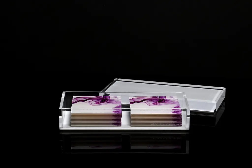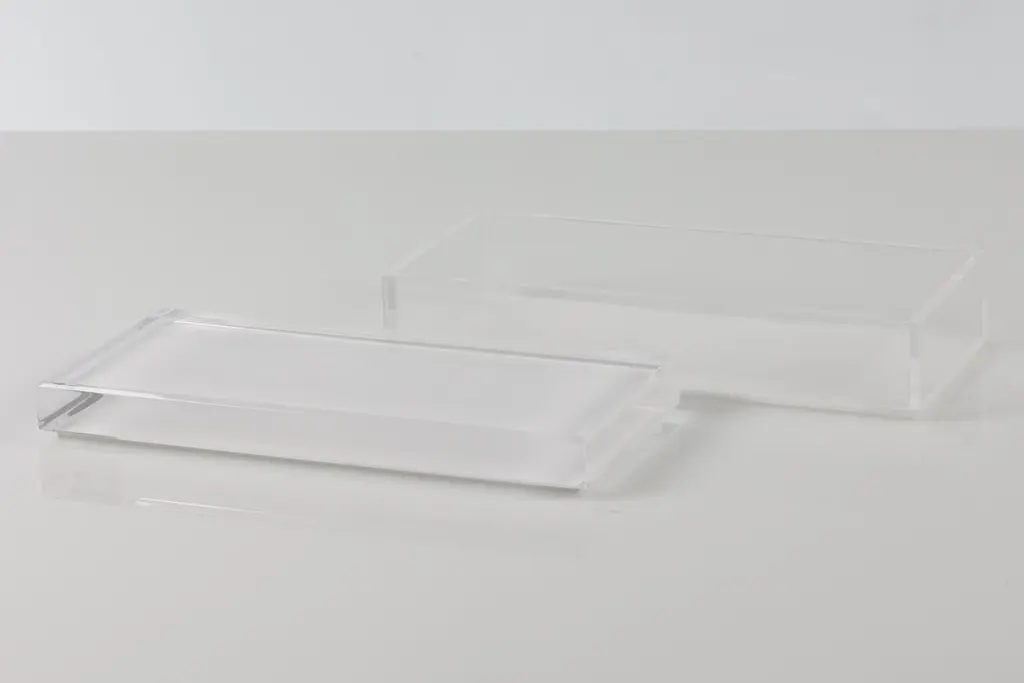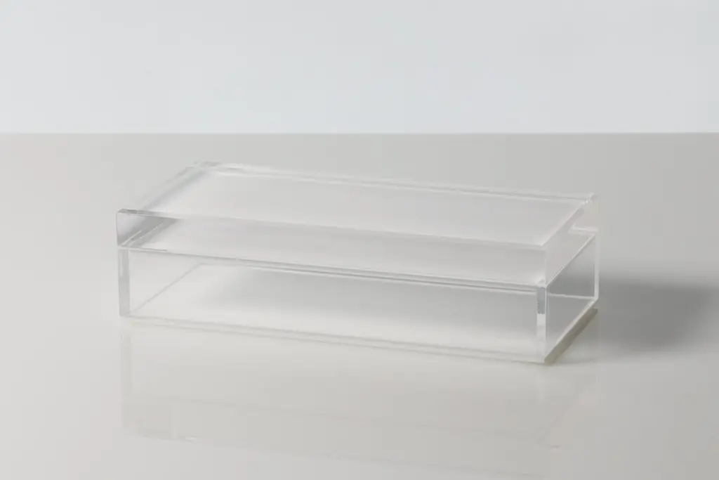 The Alexandra Von Furstenberg Shorty Box in White are both decorative and functional. Featuring a sleek, low-profile design, these boxes are versatile for various uses. Place the AVF Shorty Box on your coffee table to hold remote controls, on your desk to organize pens and pencils, or on your bedside table to store a book. Made from high-quality acrylic and hand-polished, these boxes make a brilliant centerpiece for any setting.