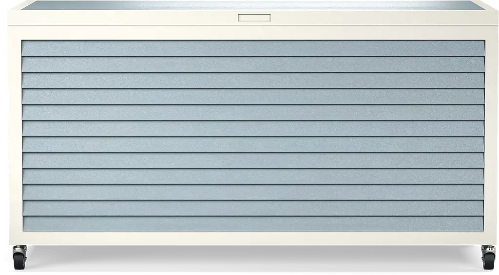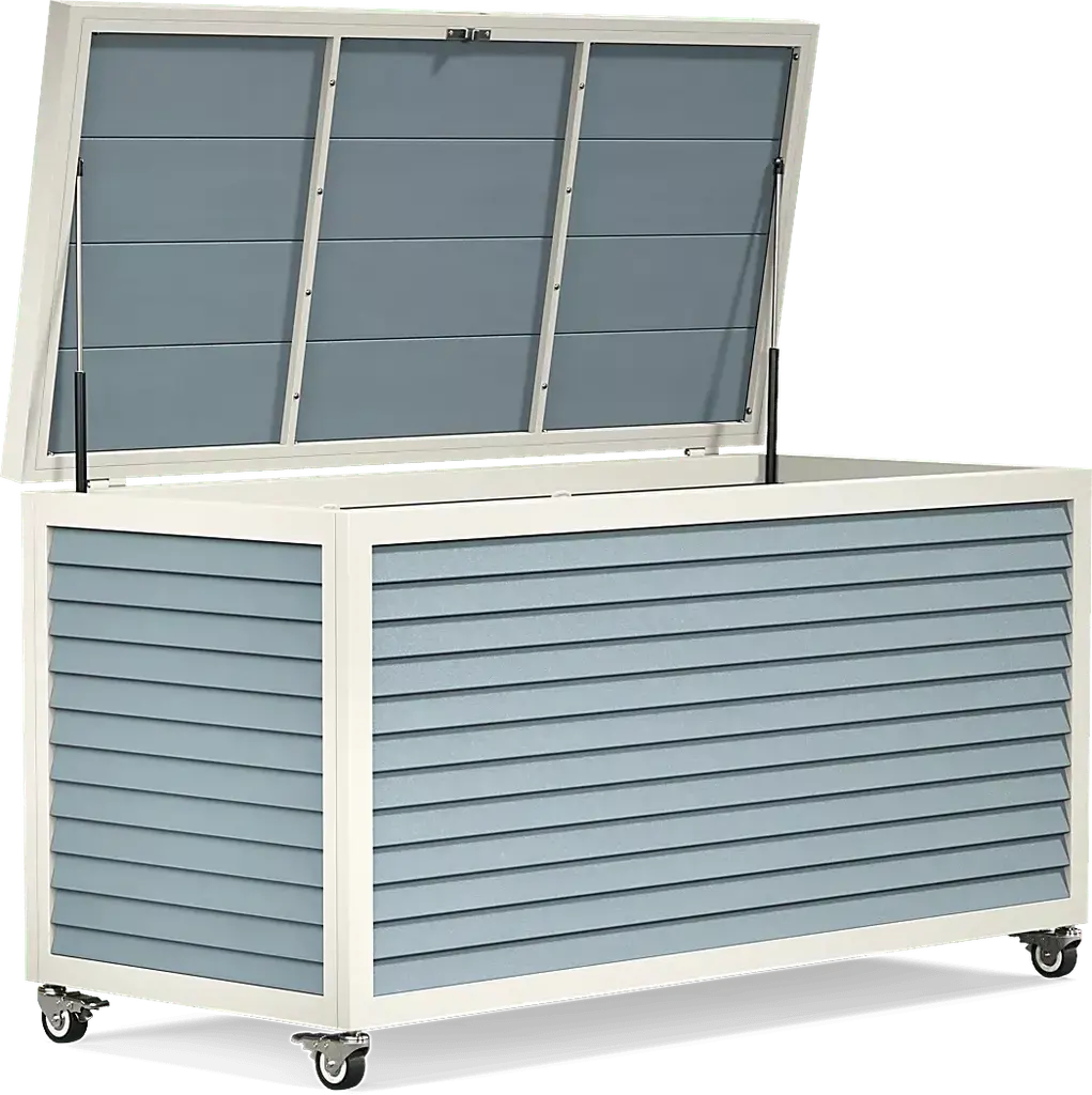 Organize your outdoor space in style with the Addy storage box. This handy accent offers a convenient place to tuck away seat cushions and other outdoor necessities under its lift-top lid. The sky blue panels of this piece feature a layered board design made with a highly durable UV-resistant outdoor material. Completing this versatile chest is a set of caster wheels with brakes for easy movement.