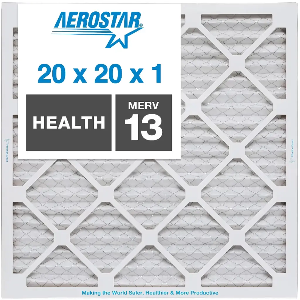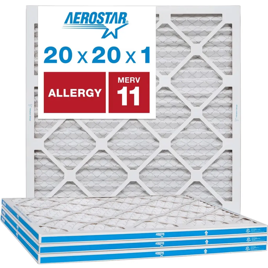 Designed for Superior Filtration Efficiency - Made with electrostatically charged synthetic material that draws and captures allergens including lint, dust mites, mold spores, pollen, pet dander, and dust. Improve Indoor Air Quality - Protect your family and loved ones with clean indoor air quality at home. Aerostar filters are a simple and cost effective step towards a healthier home environment, free of airborne allergens and particles that can trigger various allergy and asthma symptoms. Improve Efficiency and Reduce Cost - An Aerostar furnace air filter helps keep your HVAC unit working efficiently by removing dirt and reducing strain on the motor. When your unit runs properly, it consumes less energy, requires less maintenance and will have a longer life. These factors will have an impact on your utility bill and maintenance costs. It is recommended that you change the filter every 60 to 90 days during normal times of year but increase frequency to 30 days during peak summer and winter months when your unit is working the hardest. About Aerostar Furnace Air Filters - Aerostar filters are manufactured in the USA by Filtration Group, a world-leading manufacturer and supplier of filtration solutions for residential, commercial and industrial applications. The Aerostar brand is known for constantly innovating and improving their technology to help make filtration more efficient, effective and environmentally friendly every day. What's in the Box - Box of four Aerostar Furnace Air Filters. HOW TO CHANGE YOUR AIR FILTER Step 1 Remove from packagingStep 2Find the arrow & point it toward the AC/heating fan.Step 3 for Central UnitPut the filter into slot.Step 3 for Wall UnitPut the filter into its slot.