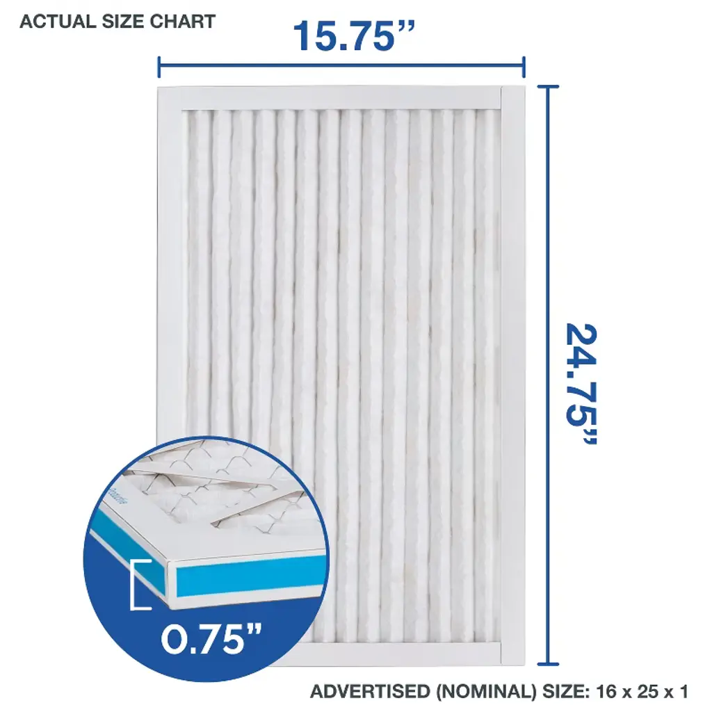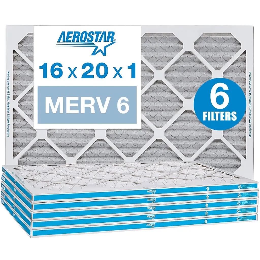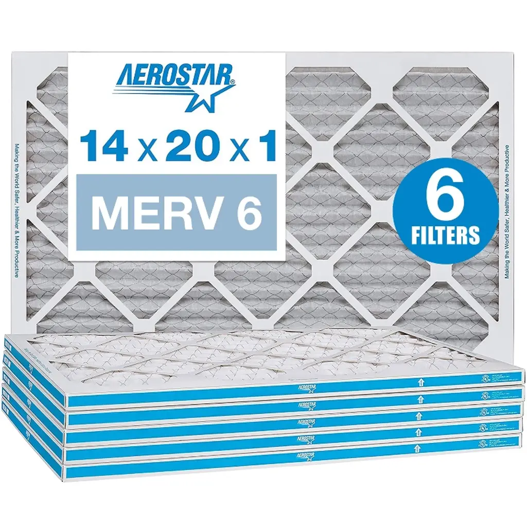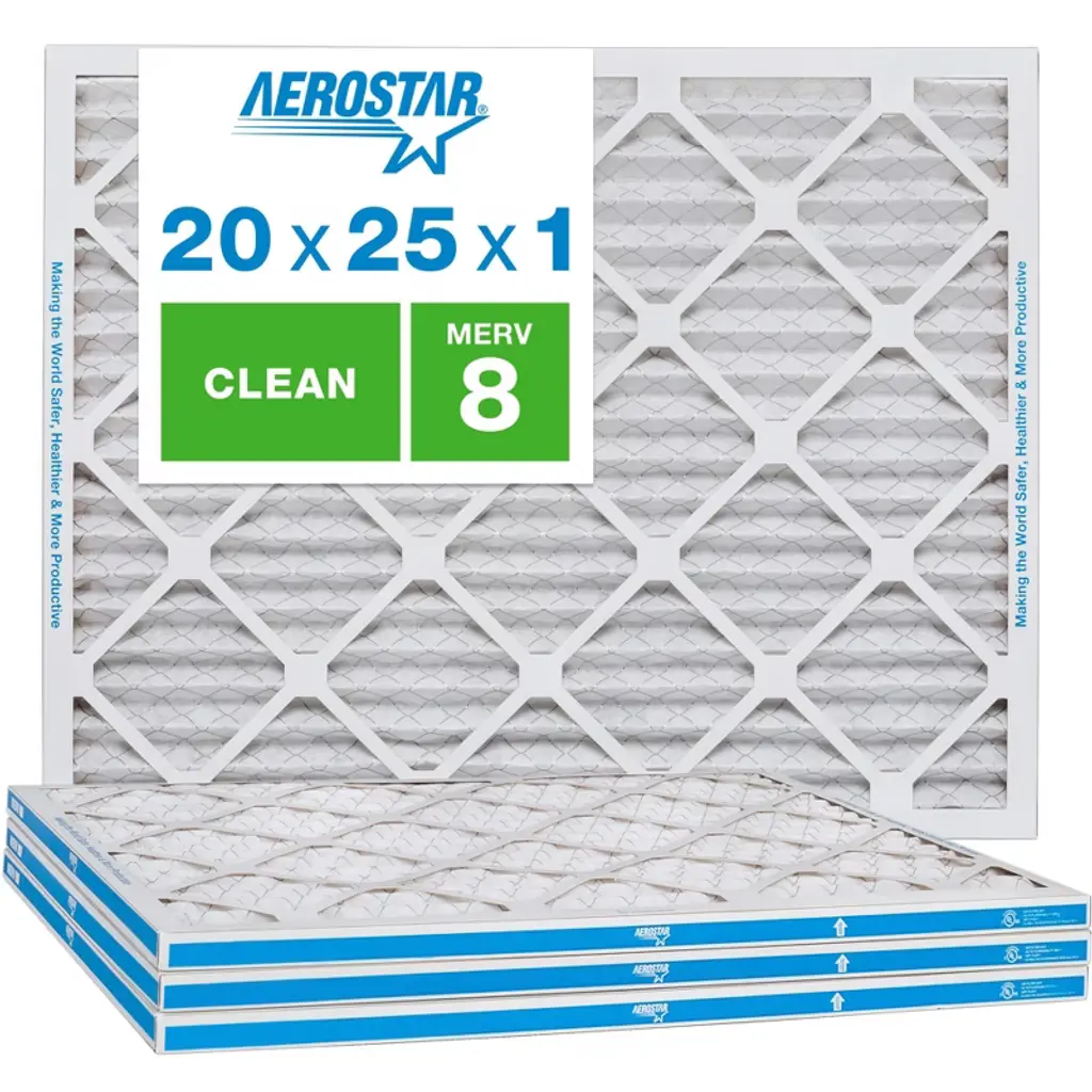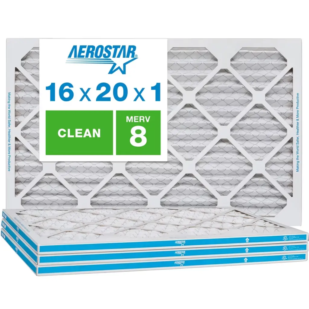 Designed for Superior Filtration Efficiency Made with electrostatically charged synthetic material that draws and captures allergens including lint, dust mites, mold spores, pollen, pet dander, and dust. Improve Indoor Air Quality Protect your family and loved ones with clean indoor air quality at home. Aerostar filters are a simple and cost effective step towards a healthier home environment, free of airborne allergens and particles that can trigger various allergy and asthma symptoms. Improve Efficiency and Reduce Cost An Aerostar furnace air filter helps keep your HVAC unit working efficiently by removing dirt and reducing strain on the motor. When your unit runs properly, it consumes less energy, requires less maintenance and will have a longer life. These factors will have an impact on your utility bill and maintenance costs. It is recommended that you change the filter every 60 to 90 days during normal times of year but increase frequency to 30 days during peak summer and winter months when your unit is working the hardest. About Aerostar Furnace Air Filters Aerostar filters are manufactured in the USA by Filtration Group, a world-leading manufacturer and supplier of filtration solutions for residential, commercial and industrial applications. The Aerostar brand is known for constantly innovating and improving their technology to help make filtration more efficient, effective and environmentally friendly every day. What's in the Box Box of four Aerostar Furnace Air Filters. HOW TO CHANGE YOUR AIR FILTER Step 1 Remove from packagingStep 2Find the arrow & point it toward the AC/heating fan.Step 3 for Central UnitPut the filter into slot.Step 3 for Wall UnitPut the filter into its slot.