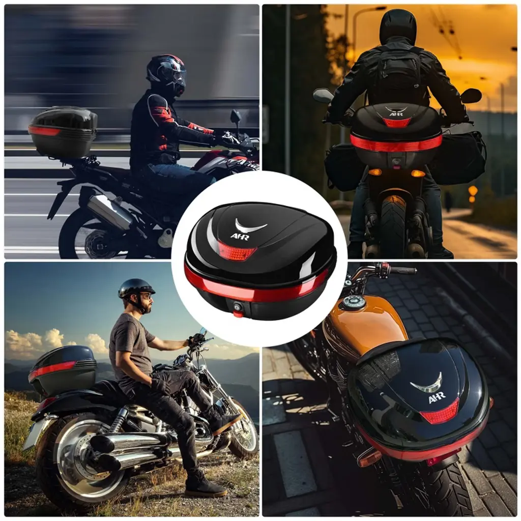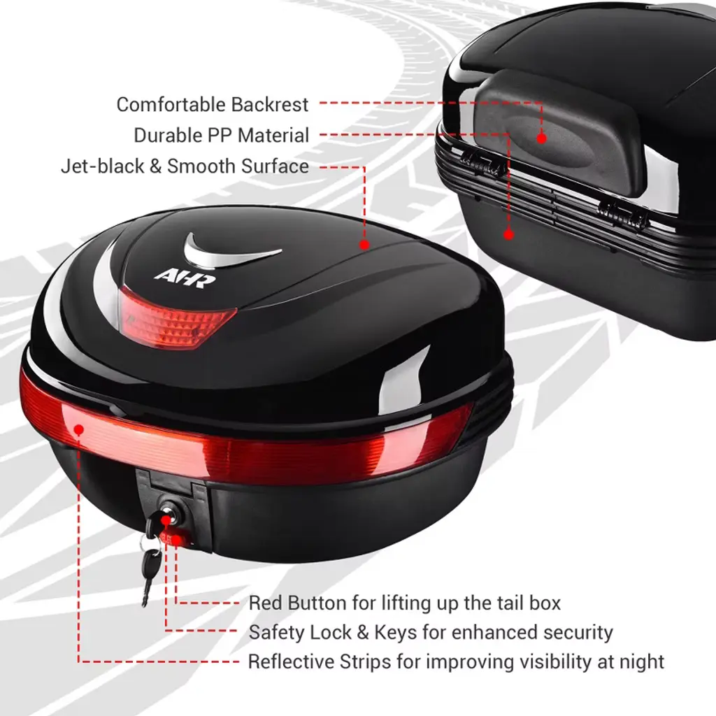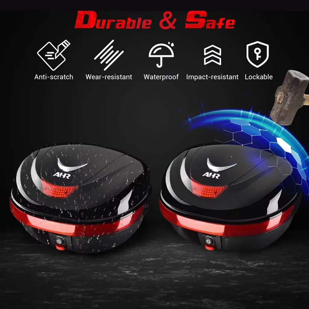 Ahr 35l Motorcycle Tour Tail Box Scooter Trunk Storage Lock Carrier Case For Helmet Black