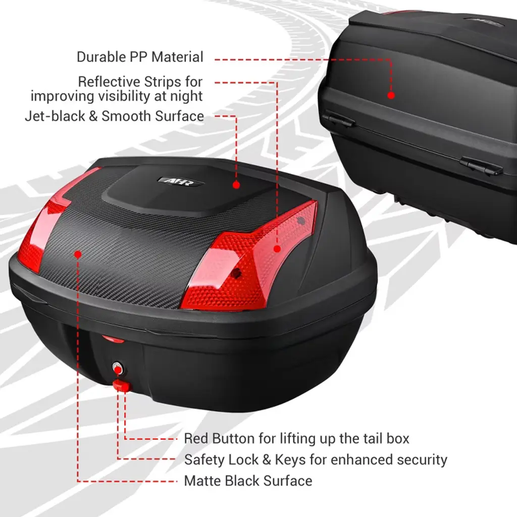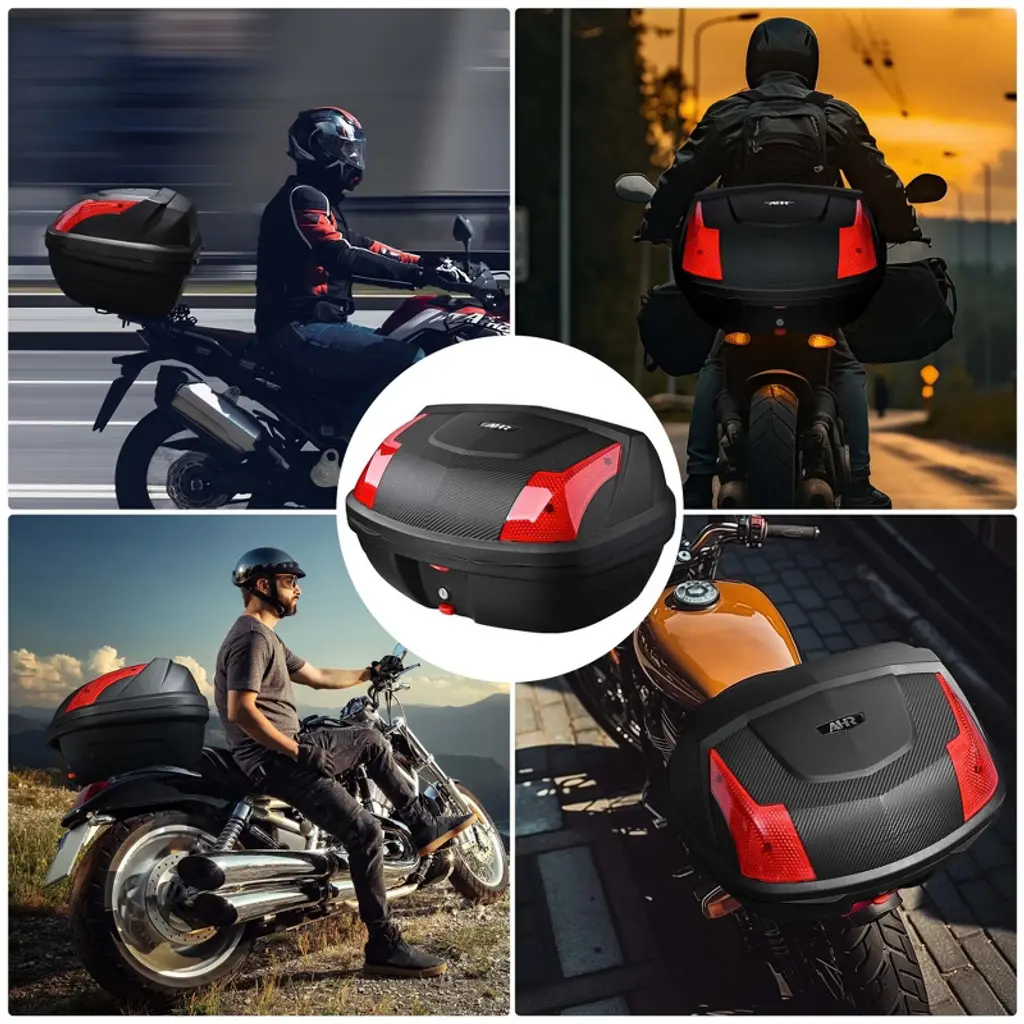 Ahr 48l Motorcycle Tour Tail Box Scooter Trunk Storage Lock Carrier Case For Helmet Black