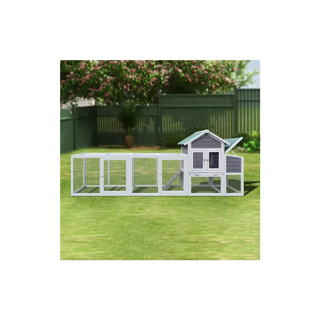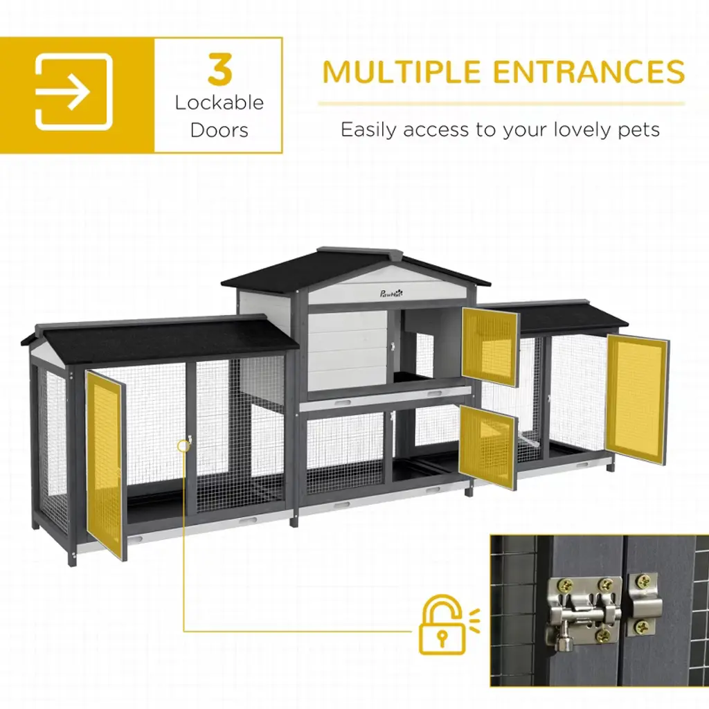 Akoasm 90.5 Inch Wooden Rabbit Hutch & Cage With Two-side Run Boxes For Guinea Pig And Small Animals-light Gray