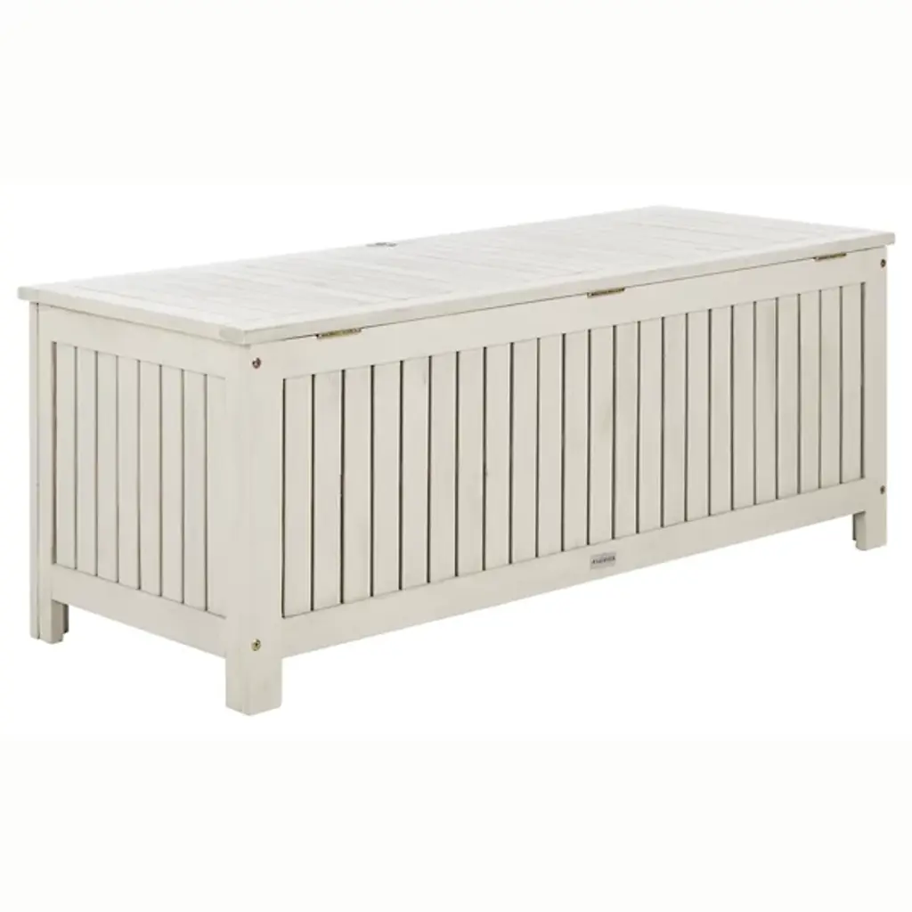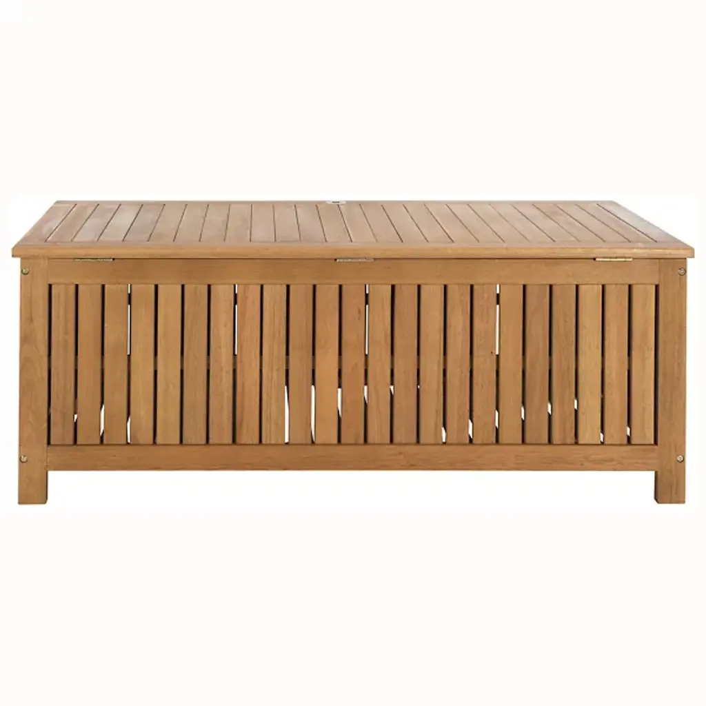 The Alameda Outdoor Cushion Box from Alder & Ore draws inspiration from North Carolina's classic resort architecture. Precision-cut eucalyptus wood slats provide essential airflow while protecting stored items from moisture. Galvanized steel hinges and hardware withstand intense weather conditions, making this storage solution practical for patios and pool areas. The handcrafted joinery and naturalistic wood grain patterns reflect traditional carpentry methods. Its generous interior compartment accommodates cushions, pool accessories, or garden tools, while the lid's sturdy construction prevents sagging and warping.
