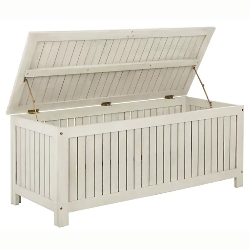 The Alameda Outdoor Cushion Box from Alder & Ore draws inspiration from North Carolina's classic resort architecture. Precision-cut eucalyptus wood slats provide essential airflow while protecting stored items from moisture. Galvanized steel hinges and hardware withstand intense weather conditions, making this storage solution practical for patios and pool areas. The handcrafted joinery and naturalistic wood grain patterns reflect traditional carpentry methods. Its generous interior compartment accommodates cushions, pool accessories, or garden tools, while the lid's sturdy construction prevents sagging and warping.