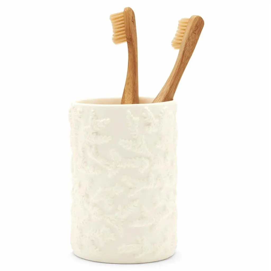 This coral-patterned white porcelain bathroom collection merges natural beauty with smart design, creating a look for the bathroom that is both organic and refined. The designers at Pigeon & Poodle believe the details of a home are just as important as the furniture. A gorgeous toothbrush holder or handcrafted canister can elevate an entire bath, the perfect frame can heighten the feel of a whole space, and a good-looking storage basket can be your look’s missing link. With thoughtful design and top-notch craftsmanship, Pigeon & Poodle create home accessories with the care and attention typically reserved for larger pieces of décor.