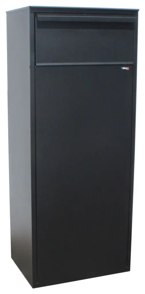 Allux Series Bjorn Parcel Box in BlackDo you need more room? The Allux Bjorn Top-loading freestanding locking Mail/Parcel Box is made of strong galvanized steel with a Black powder coat finish and features a bright LED motion activated light above the mail/parcel slot to light up entire front of parcel box at night for easy mail/parcel retrieval. LED light is powered by four AA Batteries (Double A Batteries not included) and two buttons are located inside at top of the mailbox inside mail retrieval door to adjust brightness and time light remains illuminated. It can easily fit up to two weeks of mail and is fitted with a heavy duty Ruko lock. A galvanized mounting base (Product# MB-PLSM-8002) is also available and sold separately to anchor parcel box into the ground. Parcel opening: 12-5/8" x 5-1/4" x 14". Do you need more room? The Allux Bjorn Top-loading freestanding locking Mail/Parcel Box is made of strong galvanized steel with a Black powder coat finish and features a bright LED motion activated light above the mail/parcel slot to light up entire front of parcel box at night for easy mail/parcel retrieval LED light is powered by four AA Batteries (Double A Batteries not included) and two buttons are located inside at top of the mailbox inside mail retrieval door to adjust brightness and time light remains illuminated It can easily fit up to two weeks of mail and is fitted with a heavy duty Ruko lock A galvanized mounting base (Product# MB-PLSM-8002) is also available and sold separately to anchor parcel box into the ground Parcel opening: 12-5/8" x 5-1/4" x 14" Product Height - 43.5"Product Width - 15.5"Product Depth - 14.5"Product Weight - 50 lbs.