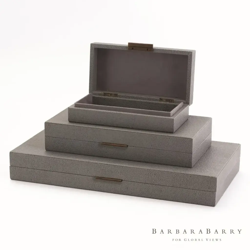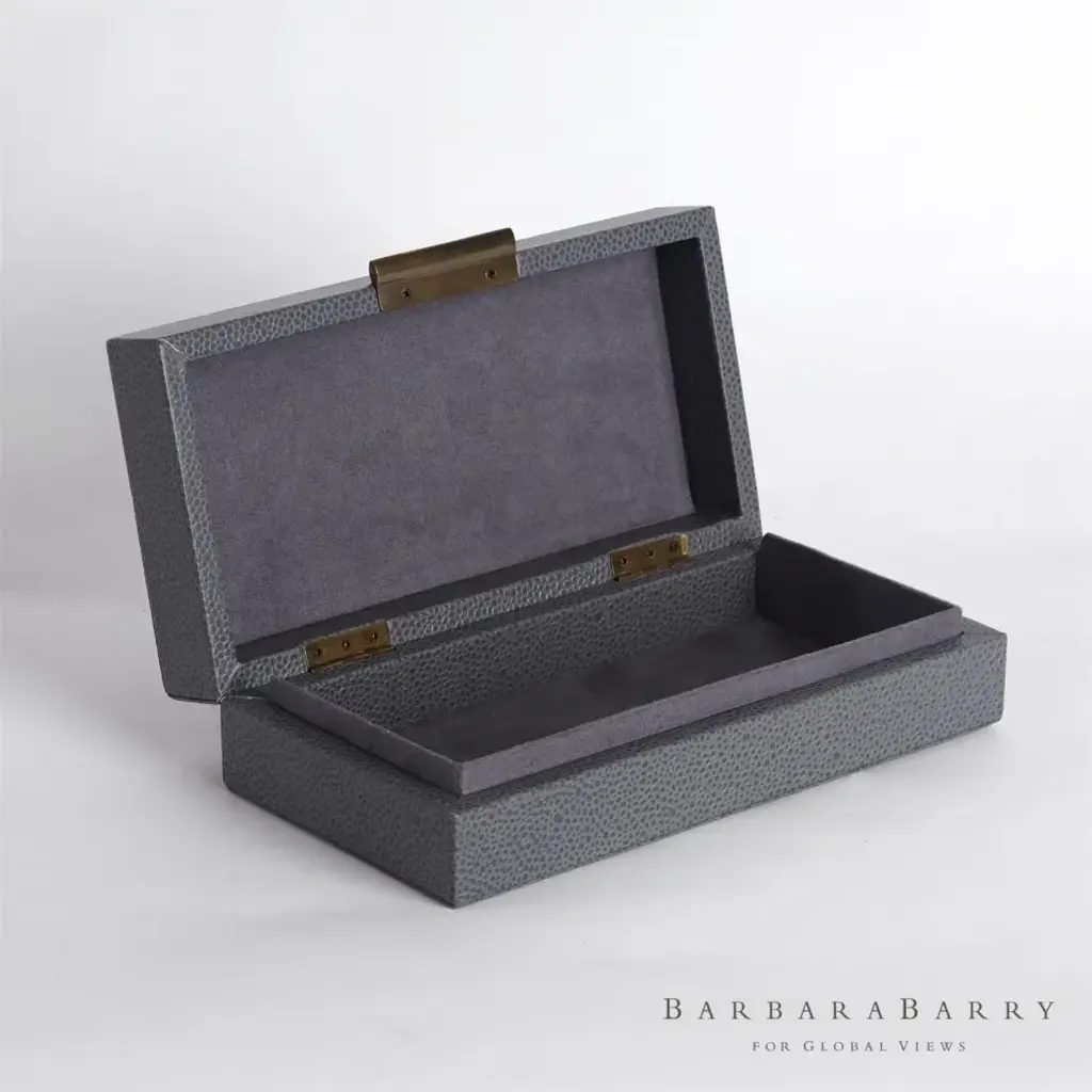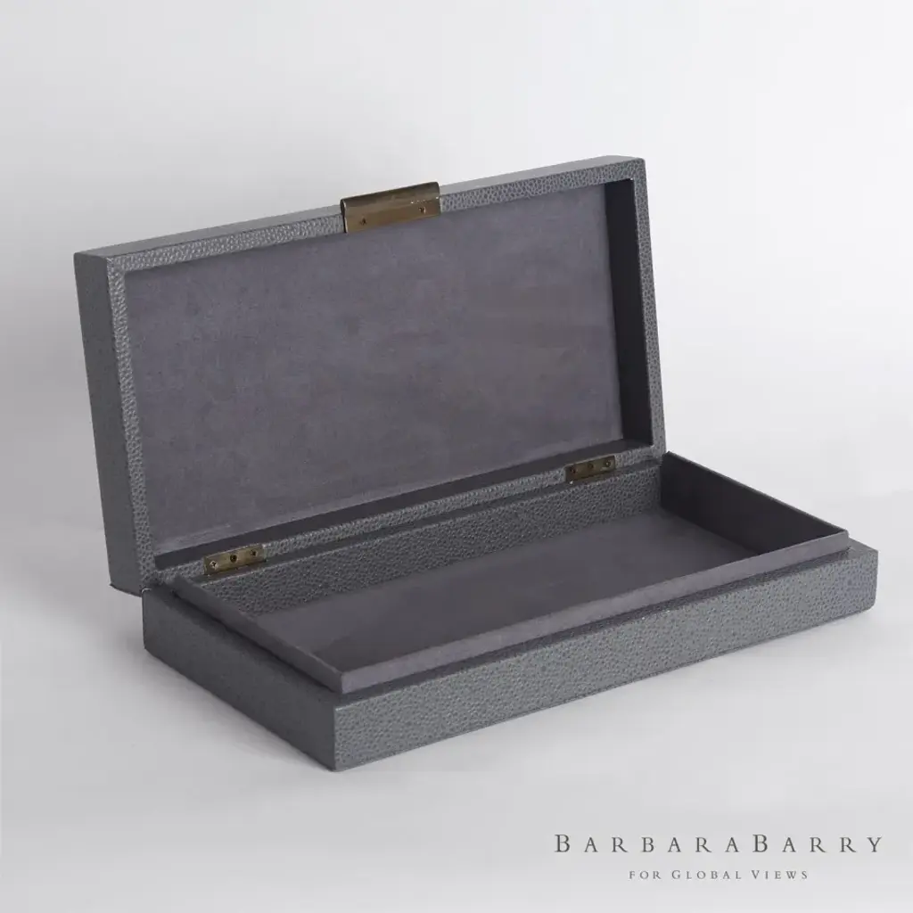 The perfect subtle graining of leather with an understated bronze slim knob, bronze color interior and suede bottom. Part of the Chalet Collection. From a fashion forward perspective, Global Views offers accessories, furniture, statement lighting, and an assortment of rugs and mirrors to add beauty and joy to your home.