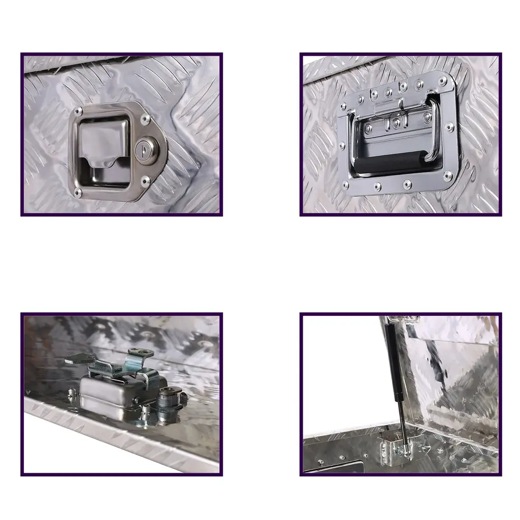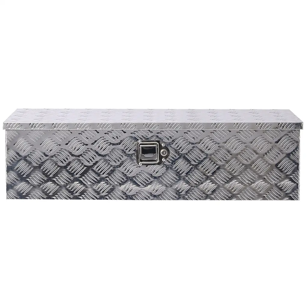 1. Premium quality: This aluminum tool box is engineered to offer high-intensity and corrosion resistance, ensuring that your tools and equipment are well-protected from external elements.2. Lightweight yet sturdy: The lightweight design of this truck toolbox means it won't add significant weight to your tractor, trailer, or truck.3. Ample storage space: With an overall size of 39"(L) x 13"(W) x 10"(H), this trailer tool box provides enough storage space to accommodate various tools and accessories, making it ideal for domestic use, garages, and DIY projects.4. Versatile mounting options: The perfect tool cabinet for anywhere, you can easily mount this tool box on the hitch rack, cargo rack of your camper, tongue of your enclosed trailer, or even at the rear of your RV for extra storage.5. Secure and convenient: This aluminum box comes with a lock and 2 keys to keep your tools secure and prevent them from getting lost.