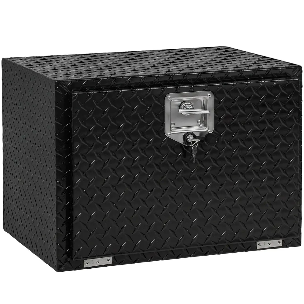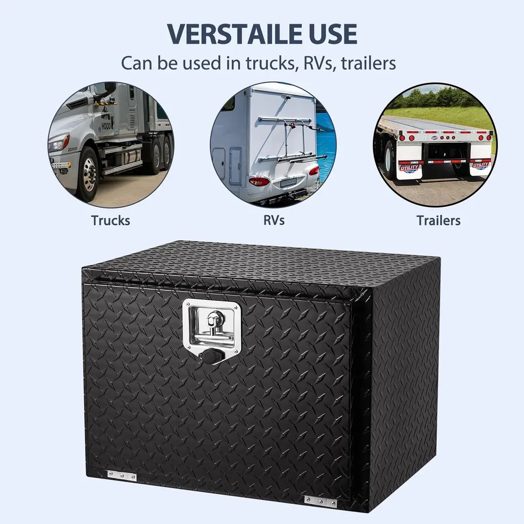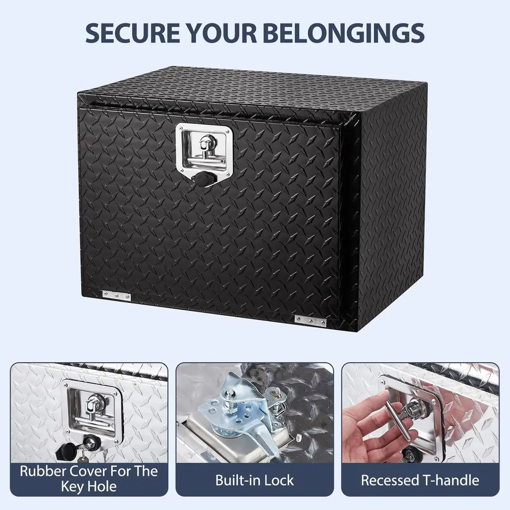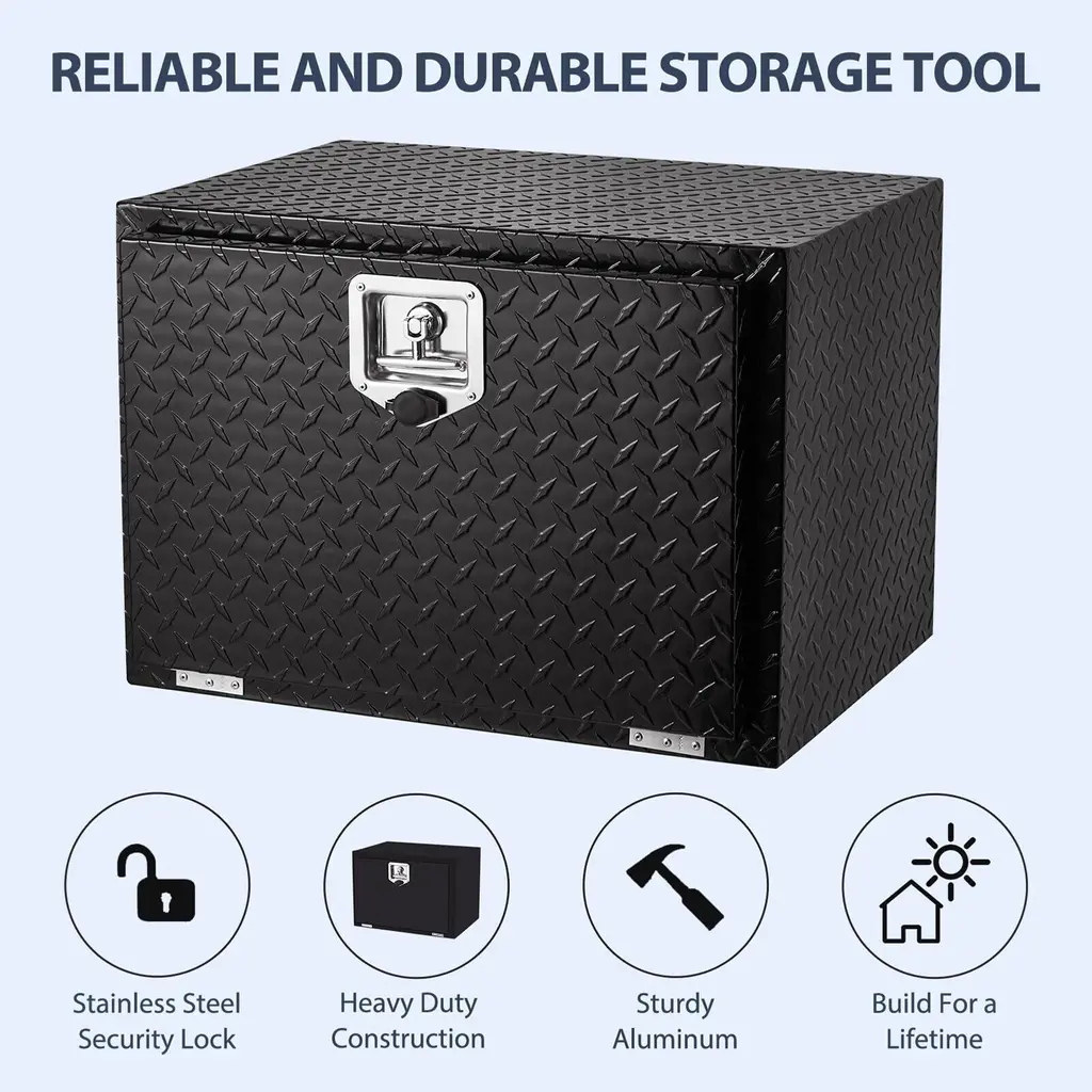 STURDY AND DURABLE: This underbody truck box is made of high-quality aluminum alloy material to ensure its durability and long service life. Offers enhanced rust and corrosion resistance, can be durable for years and keeps tools and equipment safe. INNOVATIVE MESH POCKET DESIGN: We design our products with the user in mind, so we have equipped this truck toolbox with a mesh pocket, so that you no longer need to worry about too many items falling out when you are reaching for them, giving you a better user experience. SPACE-SAVING STORAGE: This underbody tool box conveniently mounts under your vehicle, allowing you to save space in your truck bed. Keep all your tools and small accessories organized to prevent them from rolling around in the bed of your truck or RV. WEATHERPROOF DESIGN: Fully welded seam construction and a weatherproof seal allow this tool box for trucks to protect your stored items from the rain in all types of harsh weather conditions and keep the inside tool dry and neat all the time. SECURITY PROTECTION: The embedded T-shaped handle of this underbody box is designed without a bulge, making it resistant to scratches and hits during driving. The box is lockable and comes with one exclusive key to ensure the security of your items. The lock opens to a drop-down door that provides full access to all contents in the box.