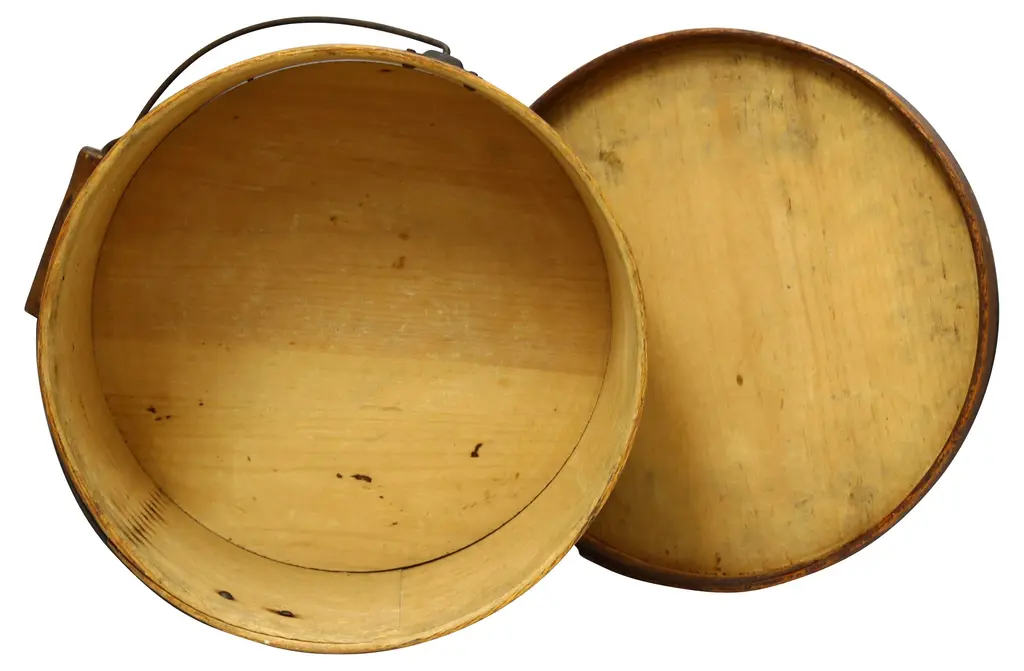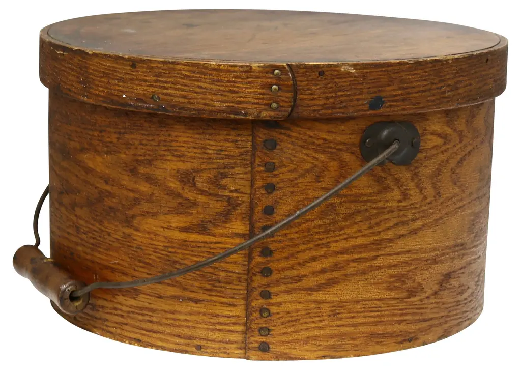 Antique Americana pantry box. Height with handle extended is 12.5". No maker's mark.