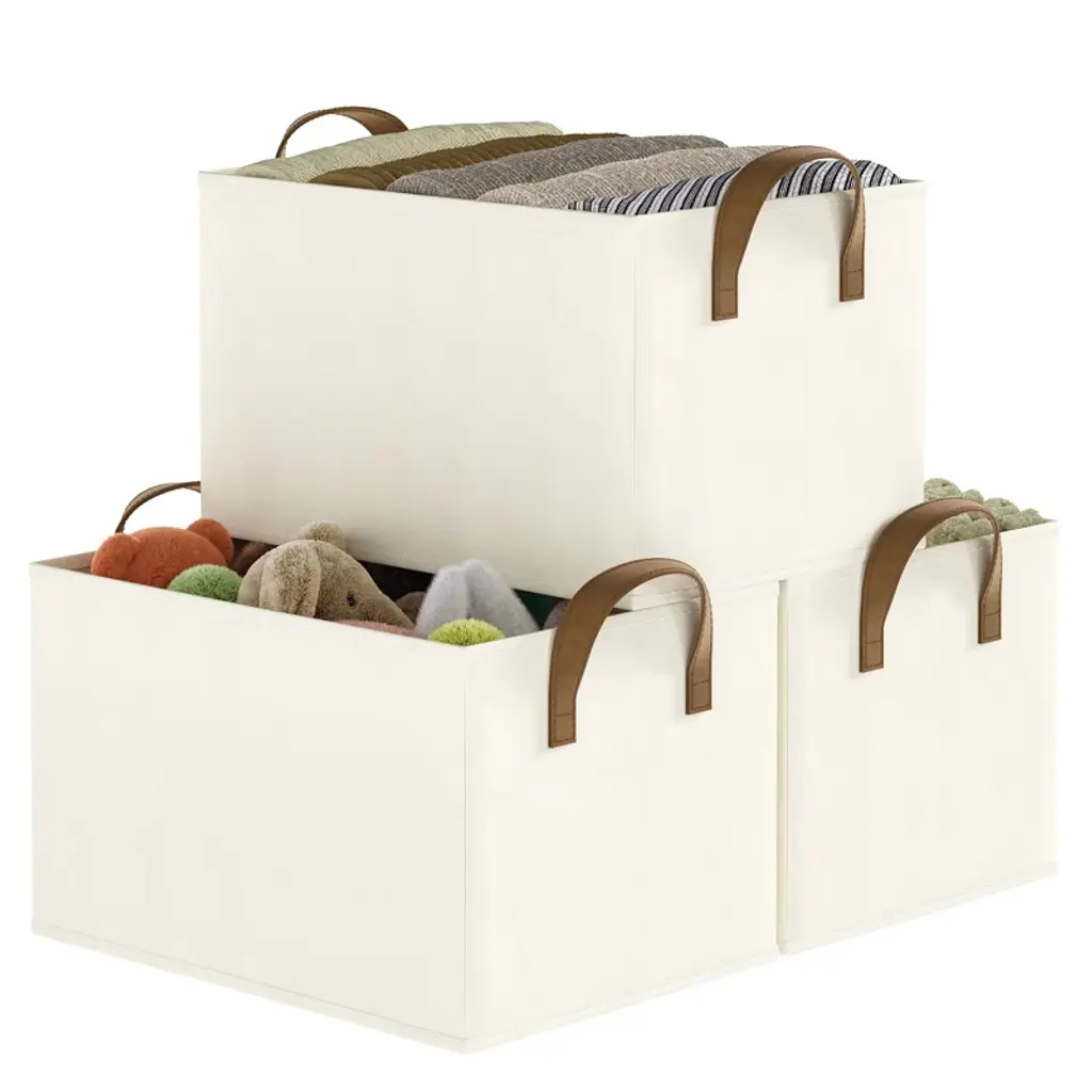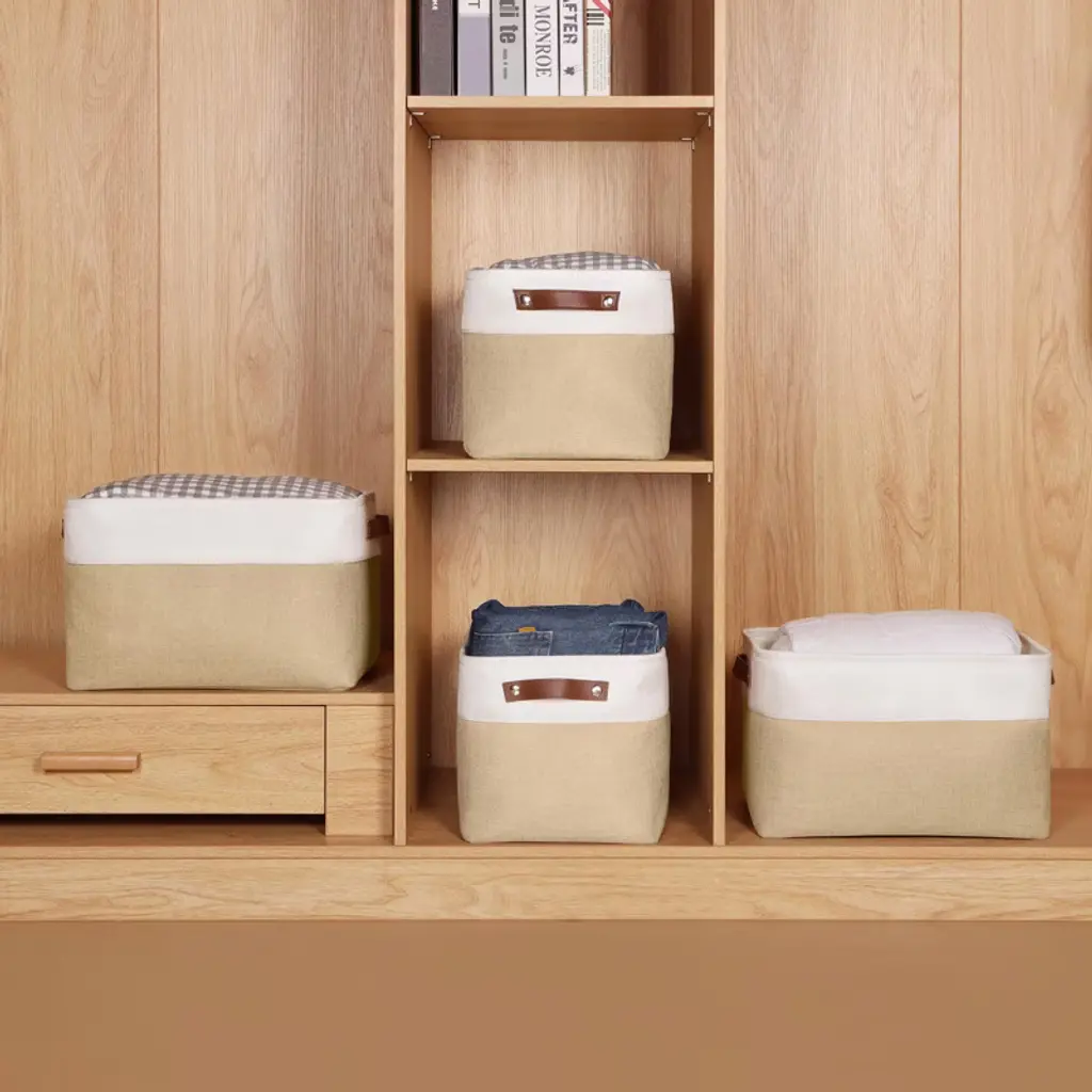 Aoibox 15 Inch Storage Baskets With Handles For Shelves Collapsible Fabric Bins Hard Bottom Closet Organizer Khaki 4 Pack