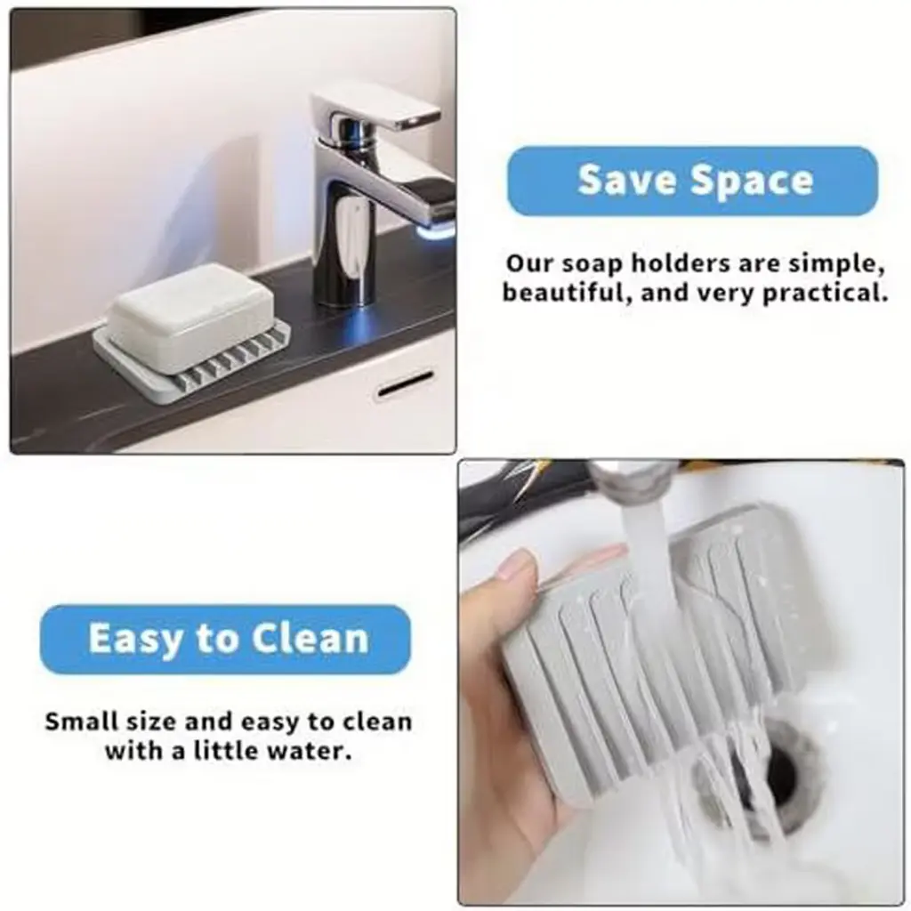 Aoibox 2-pack Self-draining Soap Dishes For Bathroom Sink, Premium Silicone Soap Holder, Keep Soap Bars Dry & Clean, Non-slip Design For Kitchen