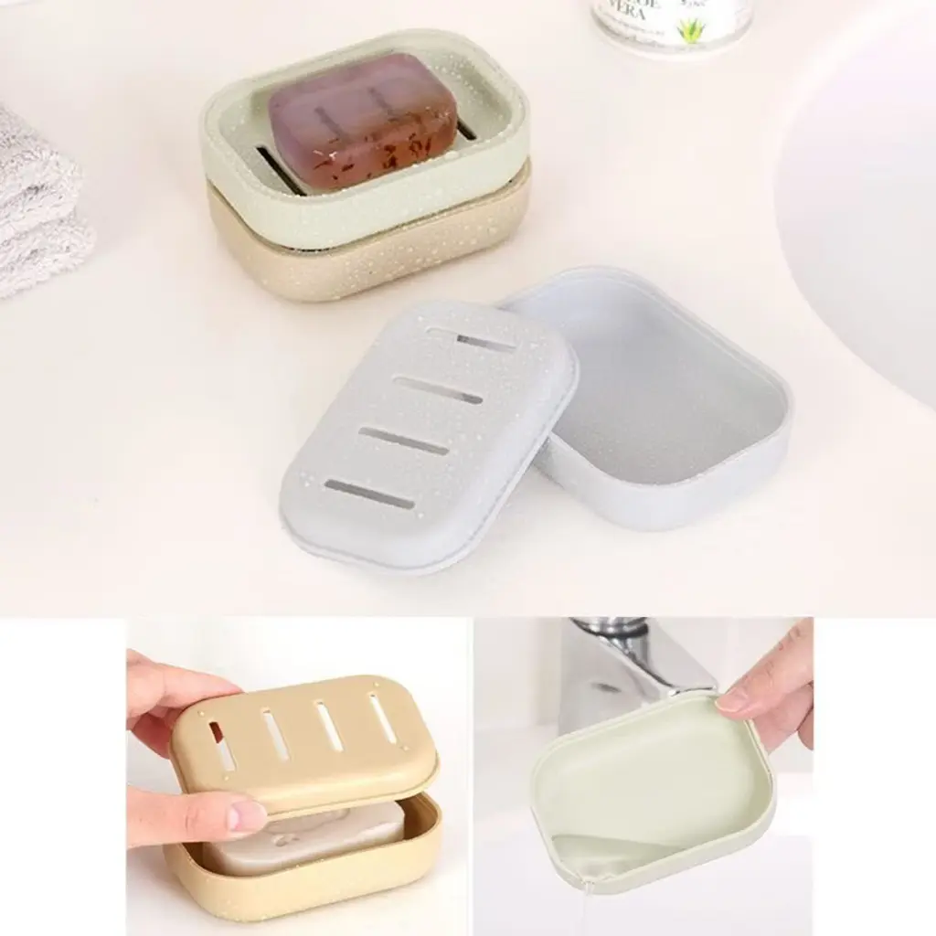 Upgrade your soap storage with this 4 - pack of plastic soap dishes. Available in four vibrant colors - milky white, gray blue, khaki, and light green, they can add a touch of style to any shower, bathroom, or kitchen. The double - layer design is a game - changer. The upper layer keeps the soap dry, while the excess water quickly drains to the lower layer. You can even reversely cover the soap with the two layers. It's incredibly portable, perfect for home use, travel, or daily trips. Crafted from high - quality plastic, it's sturdy and durable. Although it's not for large soaps, it offers a simple and elegant solution for keeping your soap in top condition. Enjoy a hassle - free soap - using experience with these soap dishes.