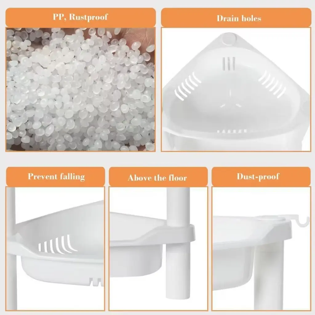 Looking for a practical and efficient shower storage solution? Our shower caddy organizer is the answer. It's made of high - quality, rustproof, and waterproof plastic, ensuring long - term use. This corner - fitting organizer is perfect for bathrooms, bathtubs, and shower pans. You can easily assemble it in minutes without tools and disassemble it for cleaning. The drain design keeps water from building up, and the flat surfaces and eaves prevent items from slipping or falling. You can adjust the number of shelves to meet your needs, and even combine two units for more storage. It offers a convenient way to keep your shower gel, shampoo, and cleaners organized, making your shower time more enjoyable.
